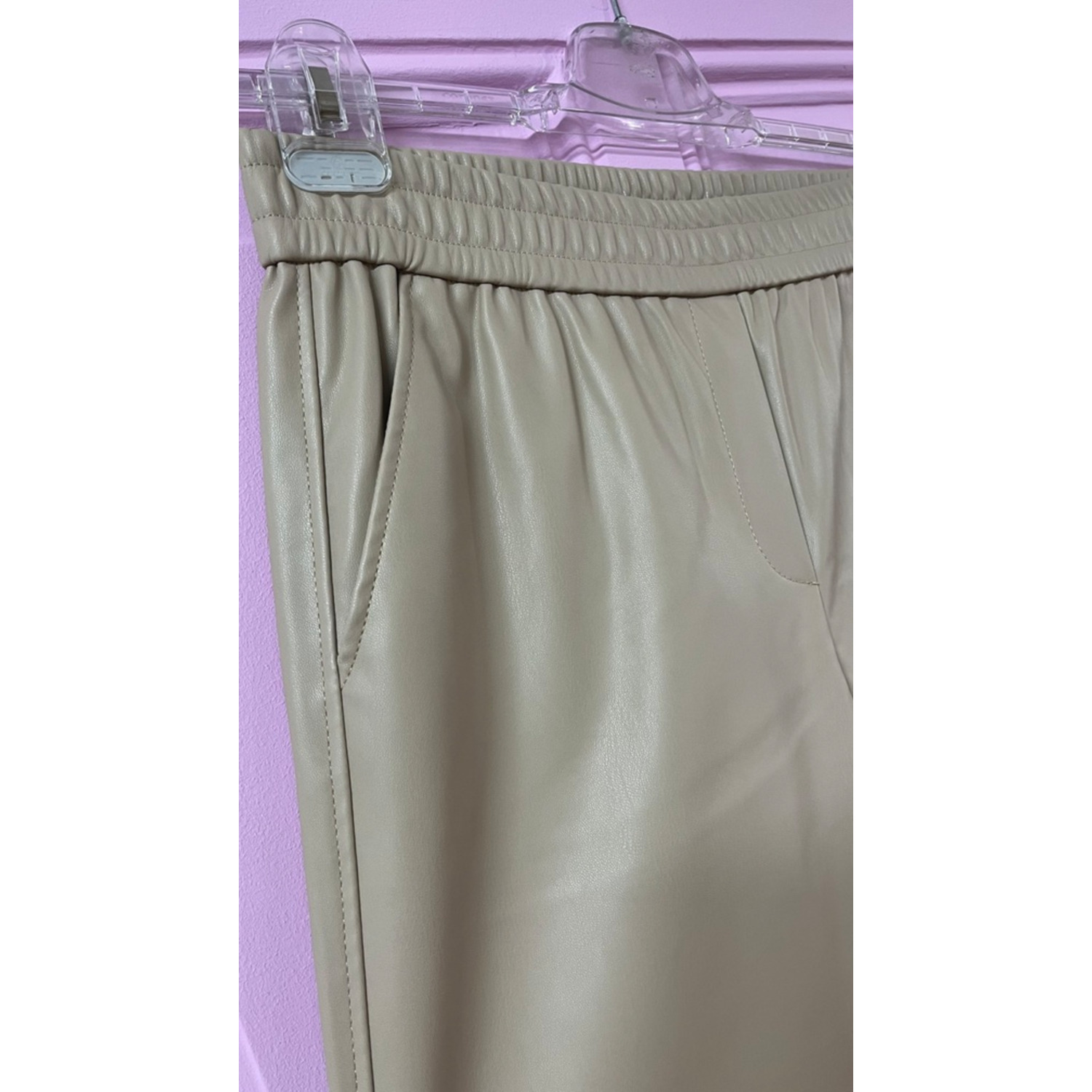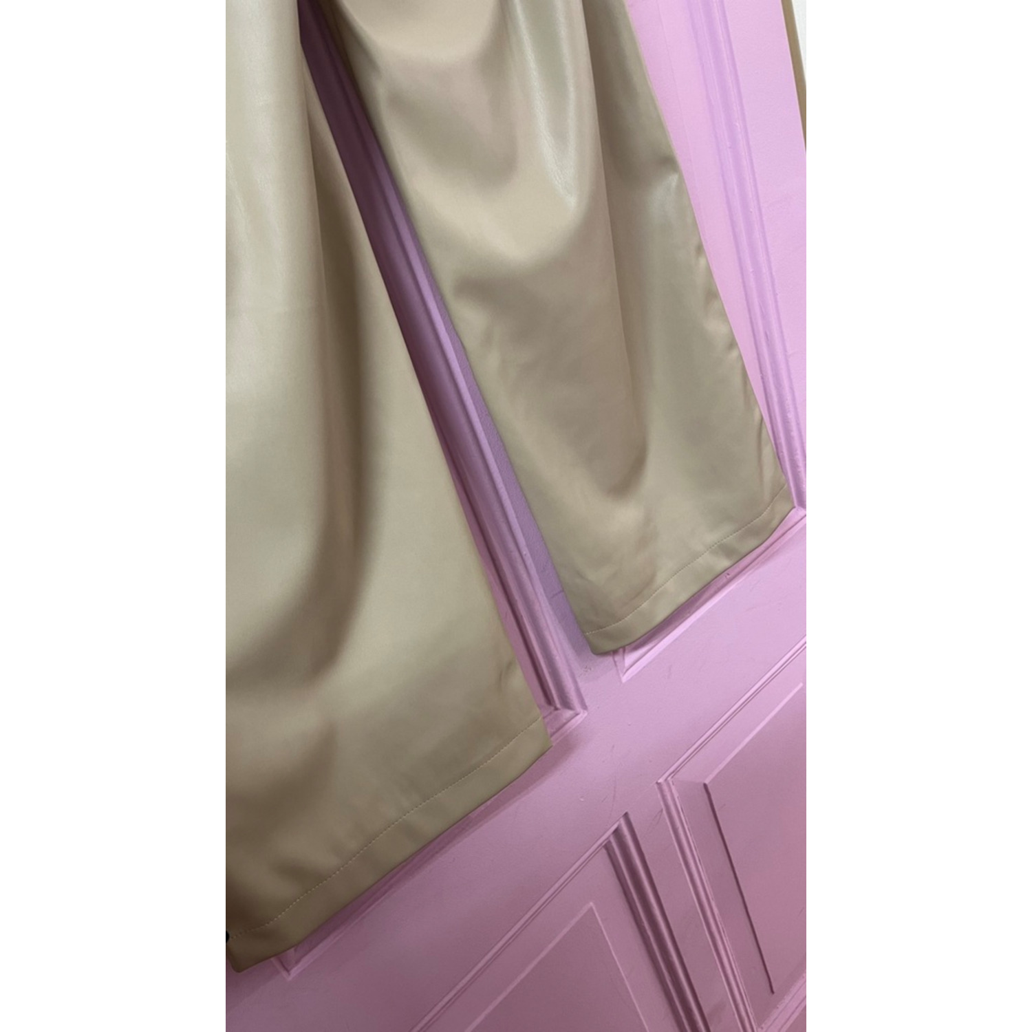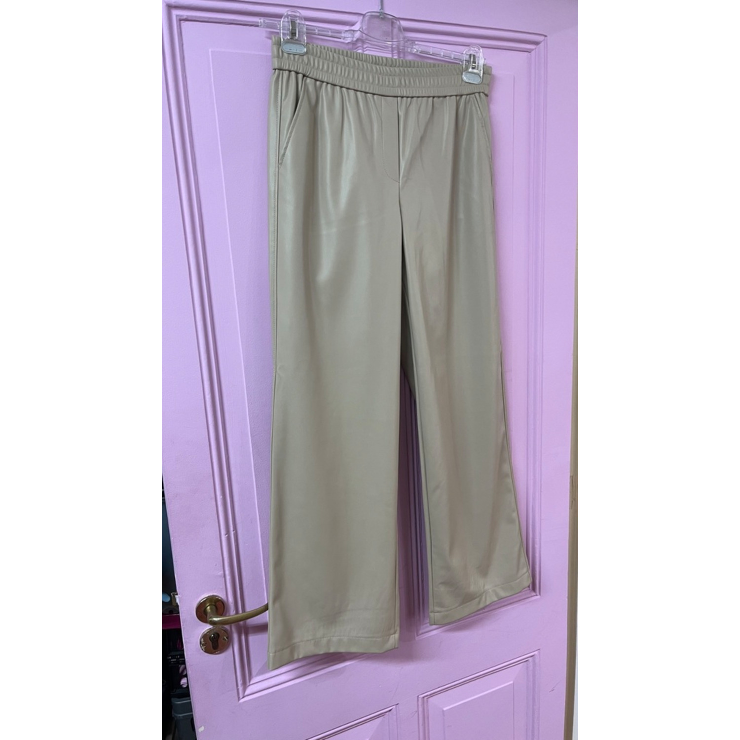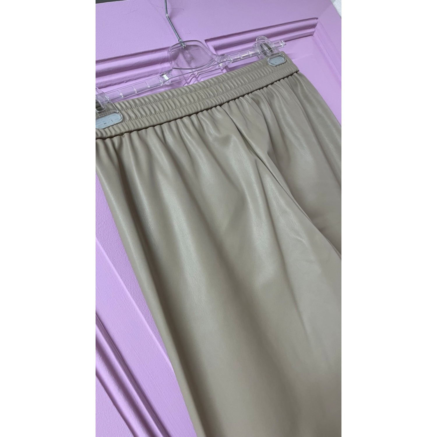 Materiaal: 100% Polyester Lengte: Lange lengte Pasvorm: Normale pasvorm Wasvoorschrift: 30°C Bijzonderheden: Mooie wide leg leather look broek. Kleur fabrikant: Humus Sluiting: ELastische taille Heuphoogte: Regular waist