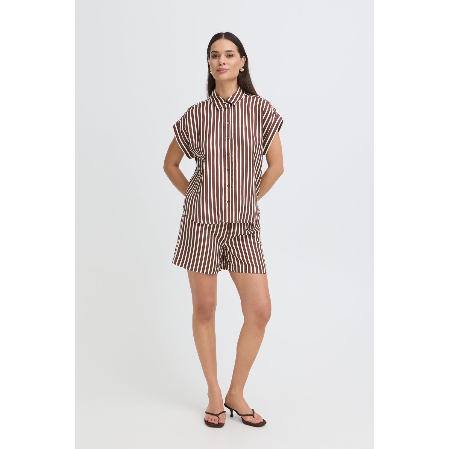 B.young BYEvino Striped Shorts Wit Bruin