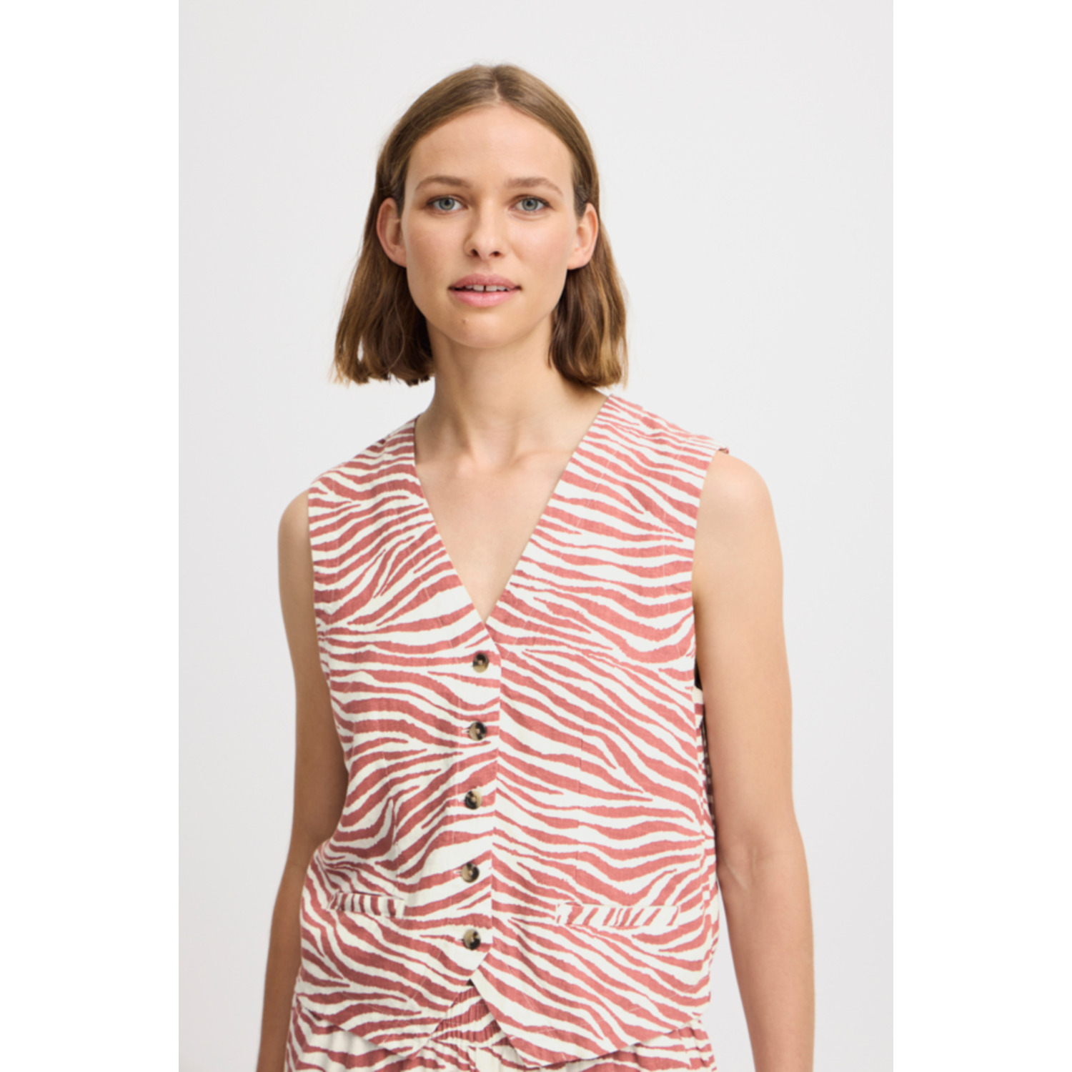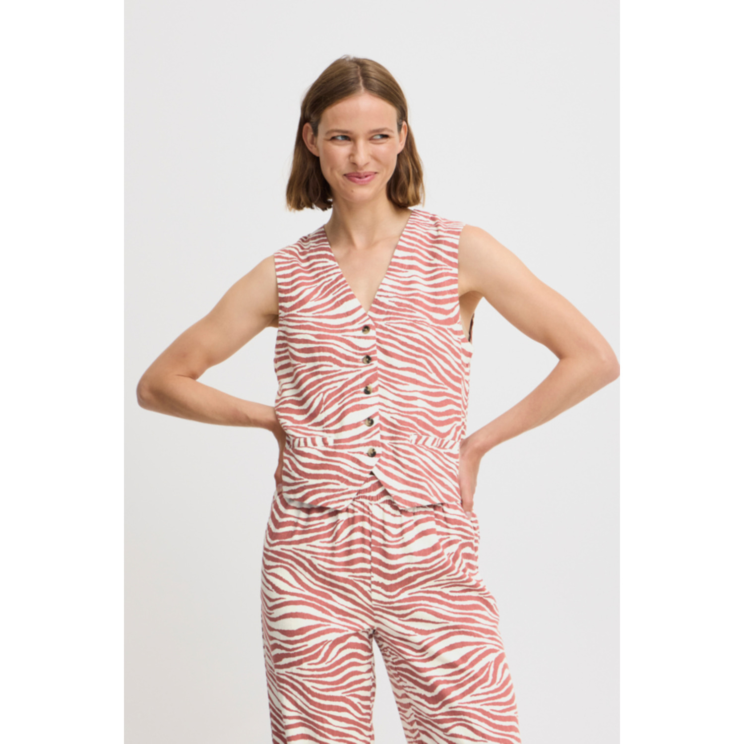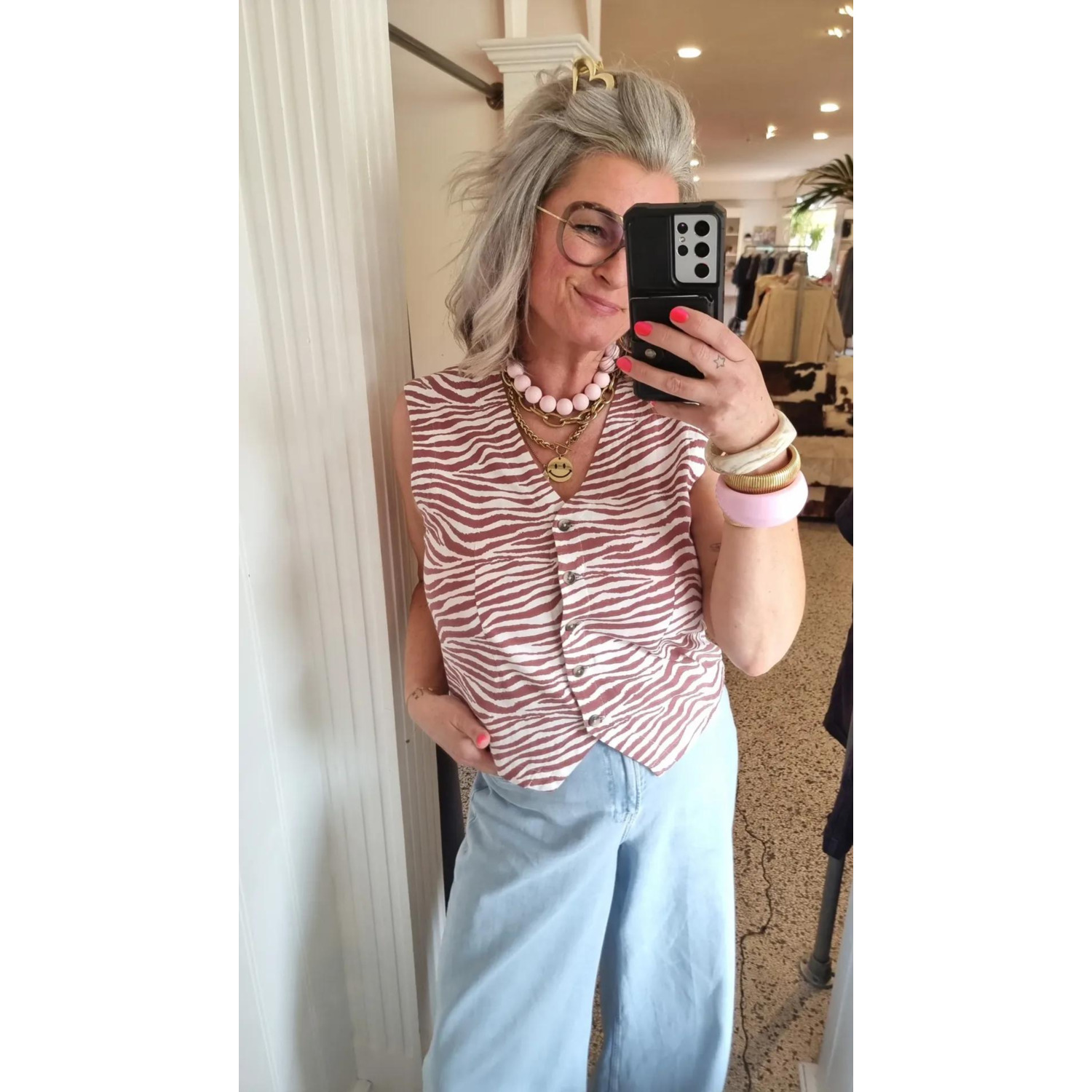 Materiaal: 55% Linen, 45% Viscose Lengte: short length Pasvorm: Regular fit Wasvoorschrift: 30°C fijnwas, door de viscose linnen mix een lichte krimp die je weer kunt uitstrijken Bijzonderheden: draag het falakka gilet samen met het bijpassende shortje voor en trendy look. Kleur fabrikant: animal light maho Halslijn: v hals Mouwlengte: mouwloos Sluiting: knopen