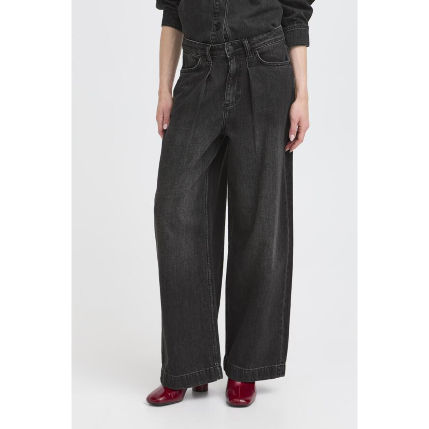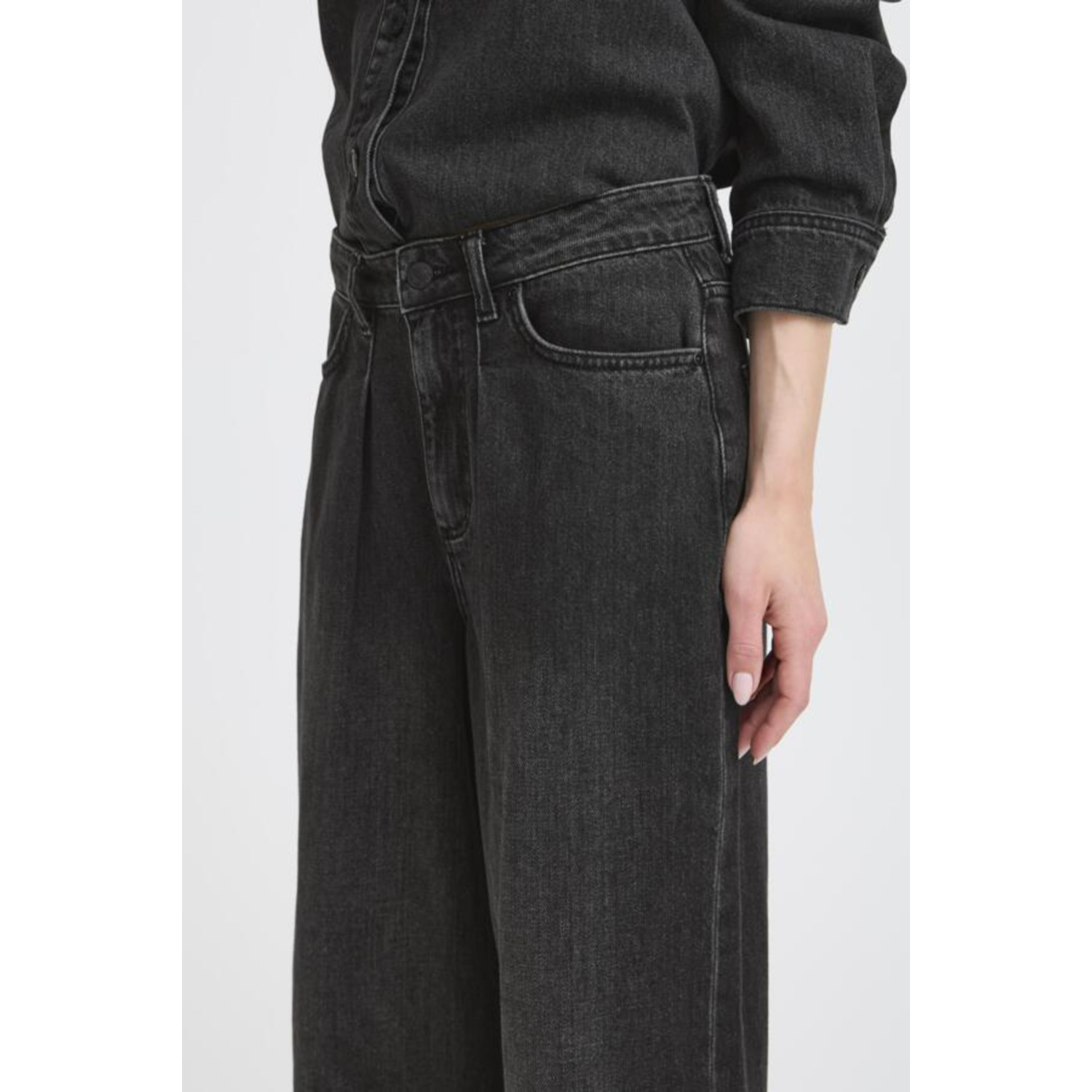 Omschrijving: De B.young BYKanoa Wide Leg Jeans in gewassen zwart is een moderne high waisted denim met een flatterend silhouet. De plooien onder de taille zorgen voor een elegante pasvorm, terwijl de enkel-lengte een trendy twist geeft. Perfect los te dragen of als co-ord set met de bijpassende BYKanoa blouse voor een complete look.