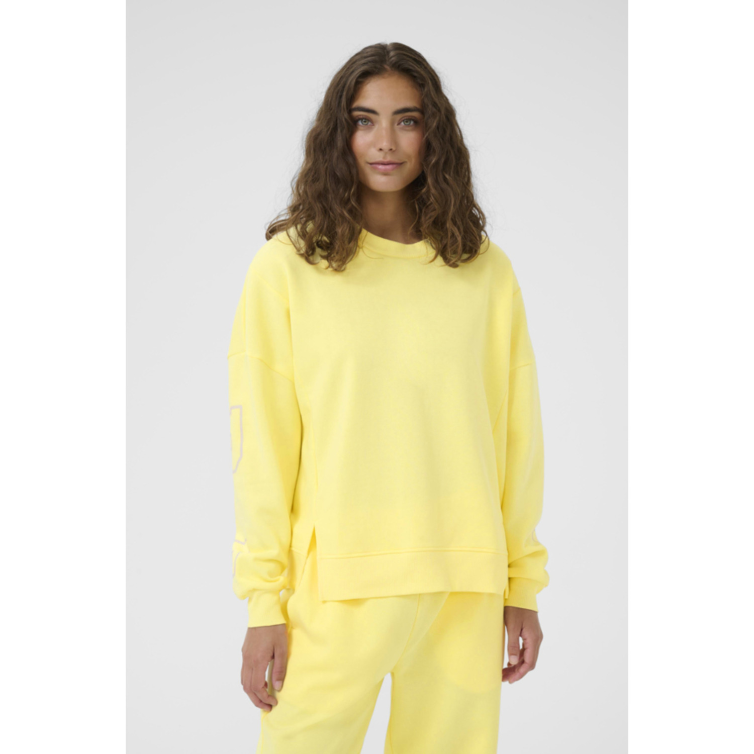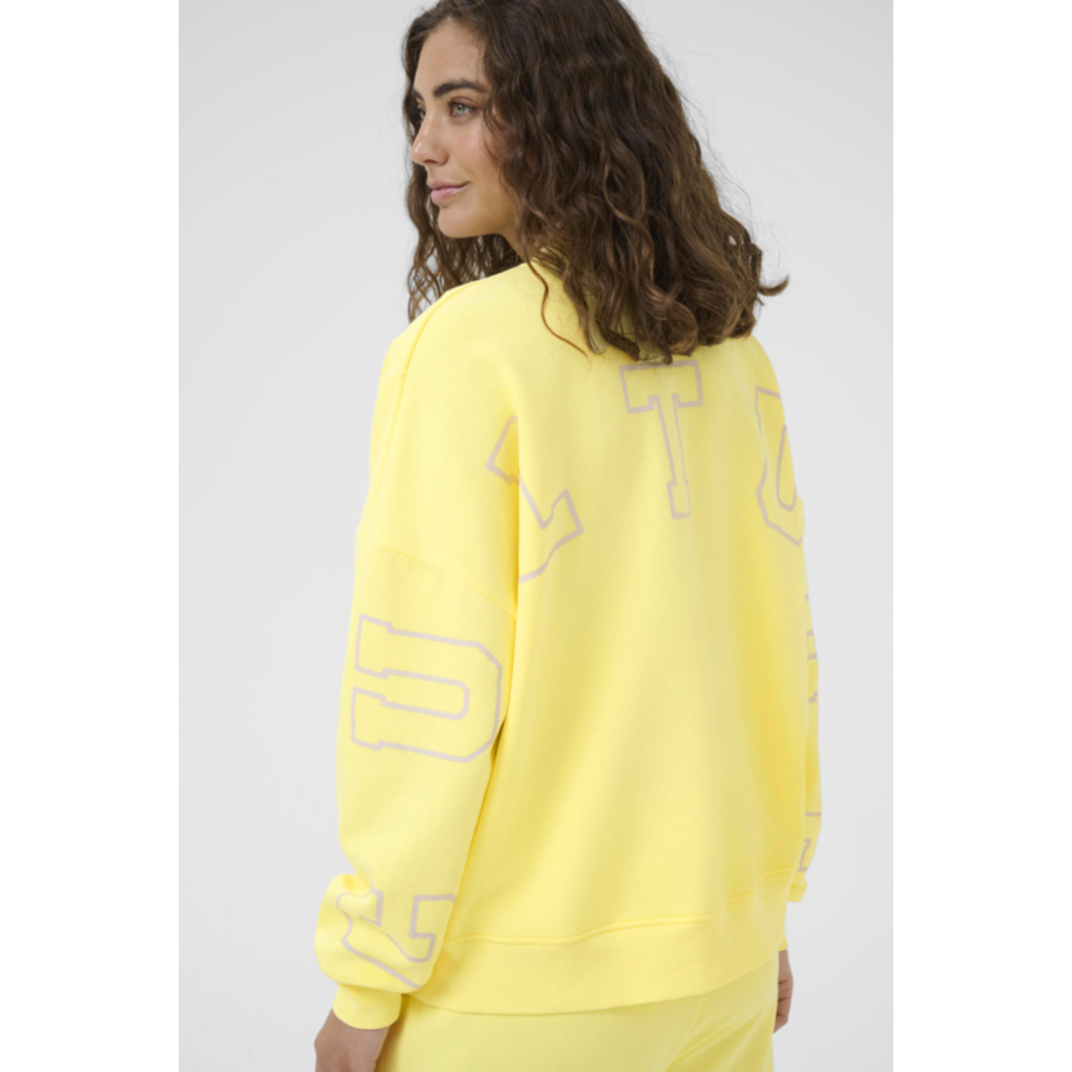 Materiaal: 65% Cotton, 35% Polyester Lengte: regular Pasvorm: oversized fit Wasvoorschrift: 30°C fijnwas Omschrijving: De Culture CUAngela Charlie Logo Sweater in geel is een opvallend en comfortabel statement item. De “Out of Office” tekst op de voorkant en het Culture-logo over de mouwen en rug geven de sweater een speelse, moderne uitstraling. Gemaakt van zachte kwaliteit en perfect voor een casual trendy look. Kleur fabrikant: Lemon Meringue Halslijn: rond Mouwlengte: lange mouwen