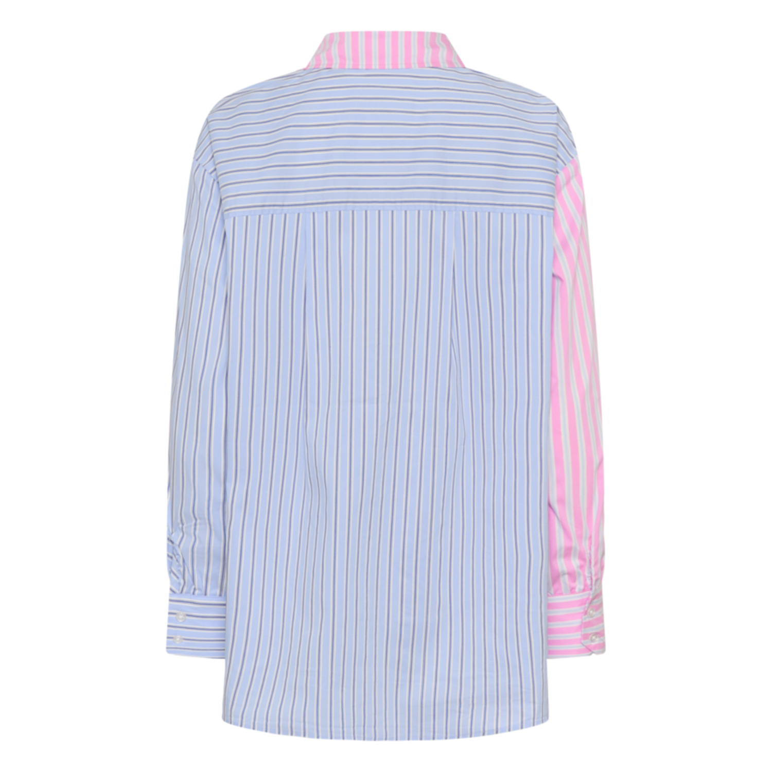 Omschrijving: De Culture CUArt Blouse is een echte eyecatcher met een speels half-om-half design: roze-blauw aan de ene kant en blauw-wit aan de andere. De afneembare roosbroche geeft extra stylingmogelijkheden, terwijl de oversized fit en langere lengte zorgen voor een moderne, nonchalante uitstraling.
