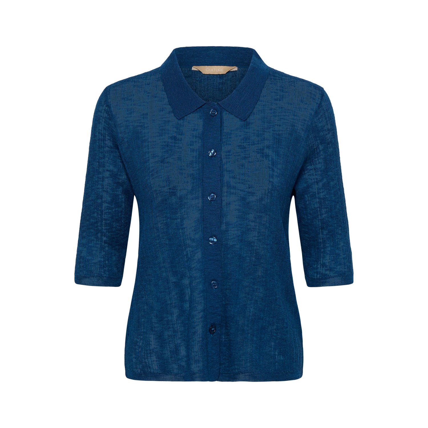Materiaal: 89% Viscose, 11% Polyamide Lengte: kort Pasvorm: classic Wasvoorschrift: 30°C fijnwas Omschrijving: De Culture CUAugustine SS Polo Top in navy blauw is een stijlvolle basic met een sportieve twist. Gemaakt van een zachte viscose kwaliteit met een subtiel ribpatroon, waardoor de top mooi aansluit. De polo kraag en korte mouwen geven een tijdloze en iets meer geklede uitstraling. Dankzij de korte lengte en classic fit perfect om eindeloos te combineren. Kleur fabrikant: true navy Sluiting: koopjes Halslijn: kraag Mouwlengte: korte mouwen