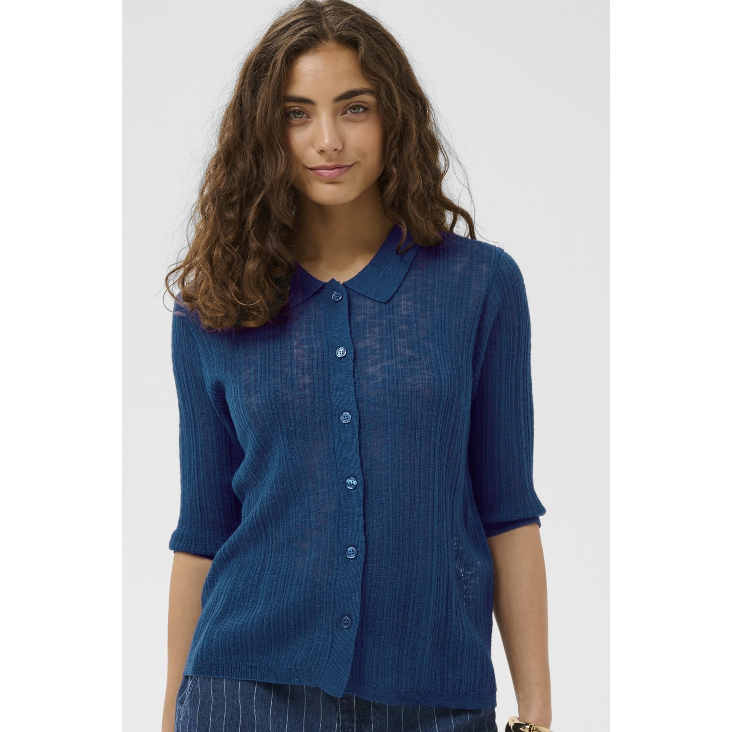 Stylingtip Draag deze polo top op een high waist jeans, short of pantalon voor een mooie, vlotte look. Ook heel mooi onder een blazer voor een casual chique outfit. Combineer met sneakers of een sandaal en maak af met sieraden.