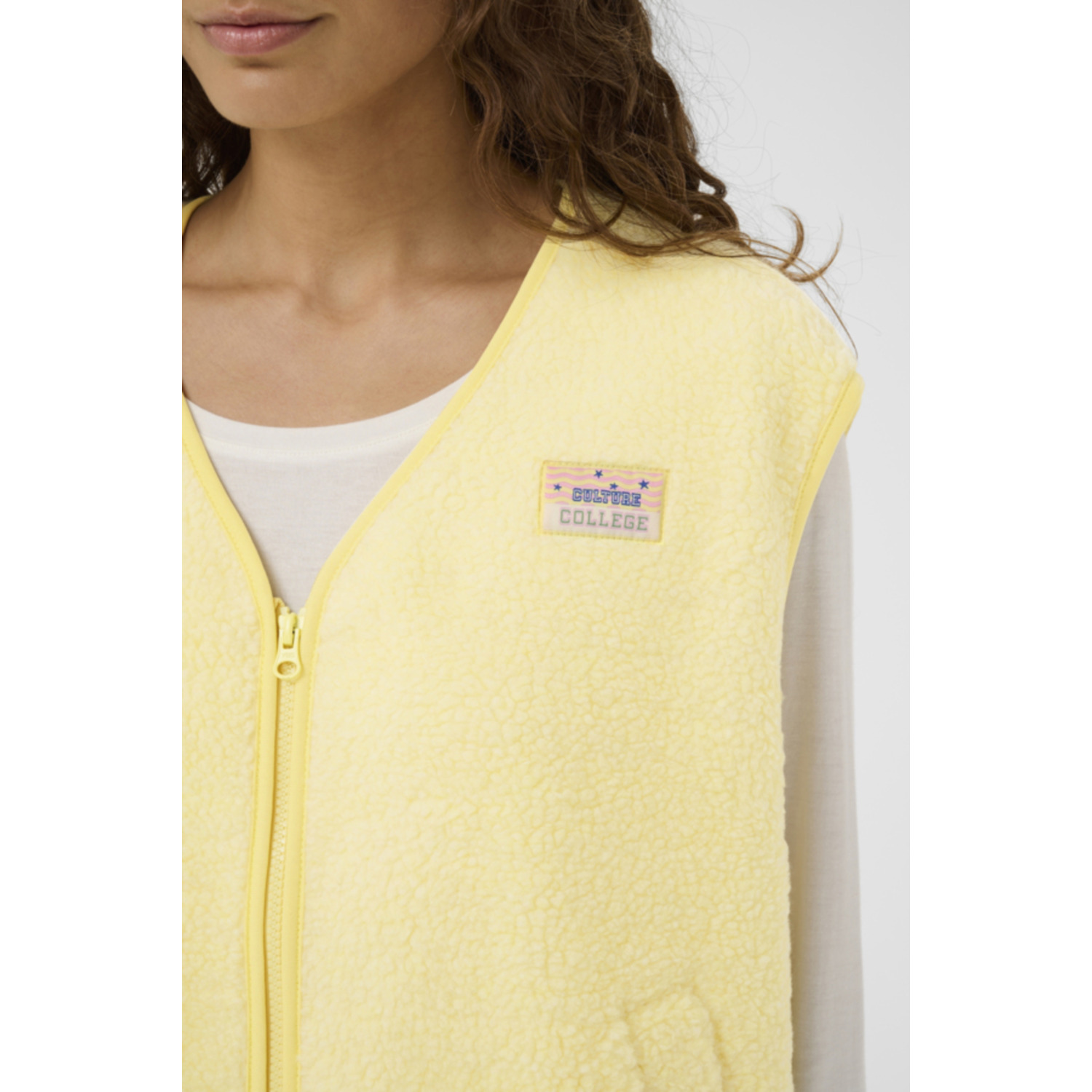 Materiaal: 100% polyester Lengte: normaal Pasvorm: loose fit Wasvoorschrift: 30°C fijnwas Omschrijving: Het Culture CUCatina Teddy Gilet in zacht geel is een heerlijk warm en stijlvol item voor het tussenseizoen. De zachte teddykwaliteit geeft een cozy uitstraling, terwijl de frisse kleur zorgt voor een moderne touch. Perfect om te layeren over blouses, knitwear of een jurk voor extra comfort. Kleur fabrikant: yellow Sluiting: rits Halslijn: rond Mouwlengte: mouwloos