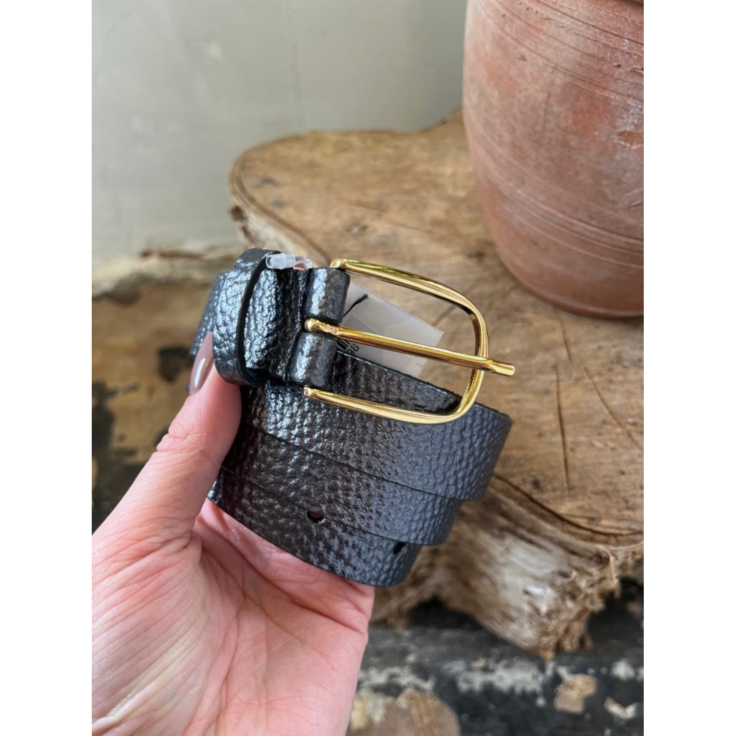 Materiaal: Leer Bijzonderheden: Mooie metallic look Kleur fabrikant: Bronze Sluiting: Gesp met 5 verschillende afstanden Afmetingen: De riem is 2.8cm breed