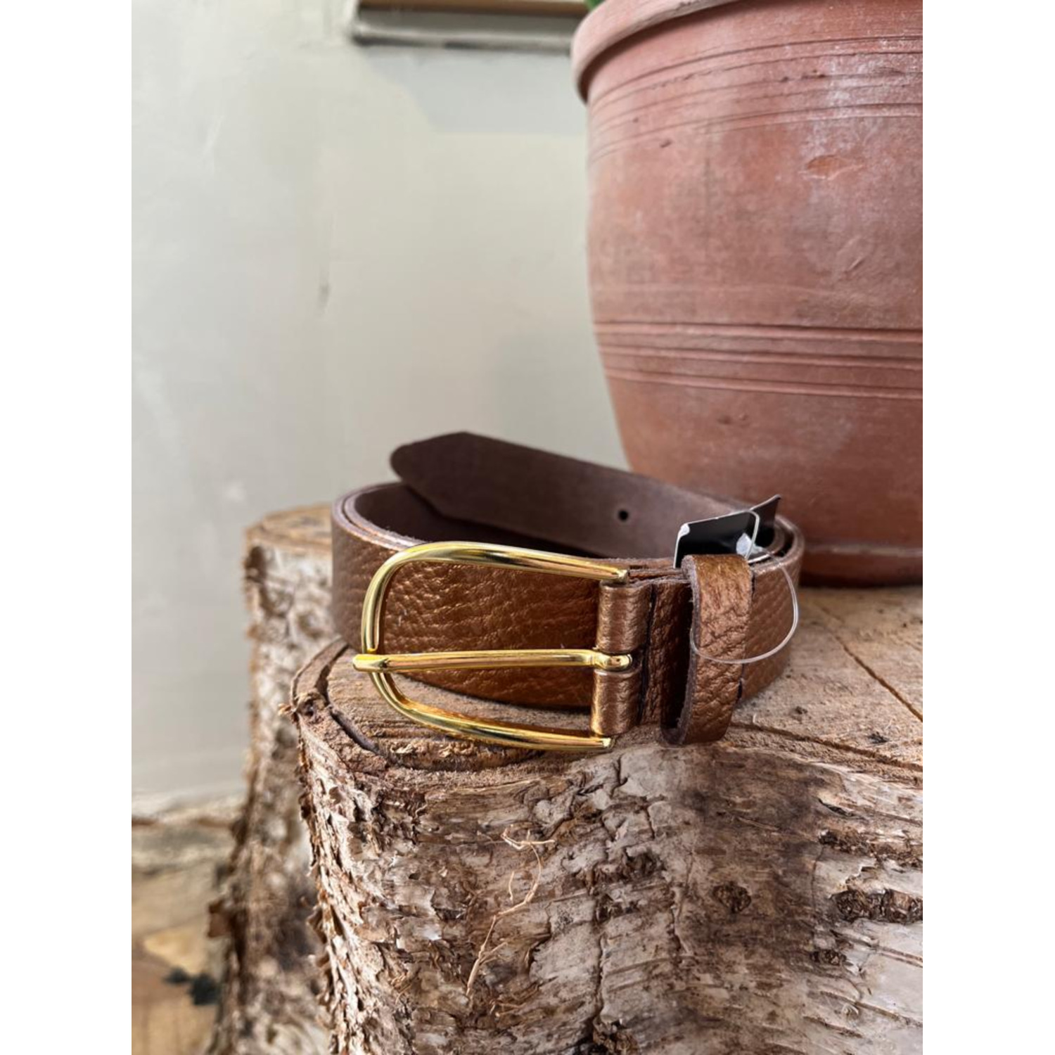 Materiaal: Leer Bijzonderheden: Mooie metallic look Kleur fabrikant: Copper Sluiting: Gesp met 5 verschillende afstanden Afmetingen: De riem is 2.8cm breed