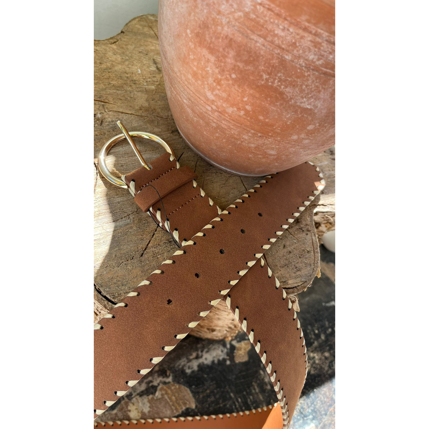 Elvy Suède Belt Cognac Bruin Goud