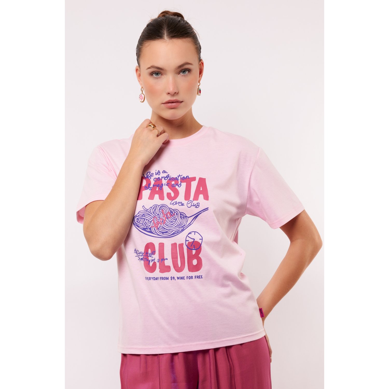 FLuresk Annora ‘Pasta Club’T-shirt Zacht Roze