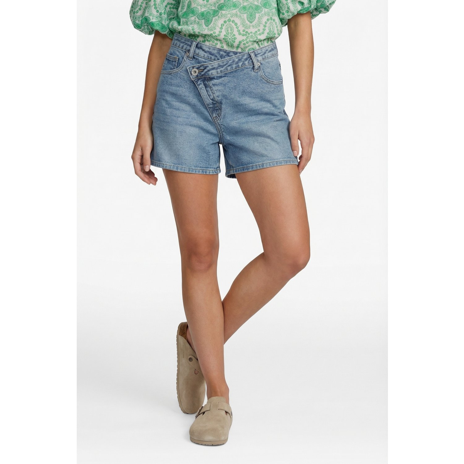 Omschrijving: De Fluresk Gwenn Jeans Shorts is een echte denim essential met een speelse twist. De opvallende asymmetrische sluiting geeft de short een unieke en trendy uitstraling. De lichte wassing zorgt voor een frisse, zomerse look. Dankzij de rechte fit en comfortabele stof is dit een short die je moeiteloos elke dag draagt.