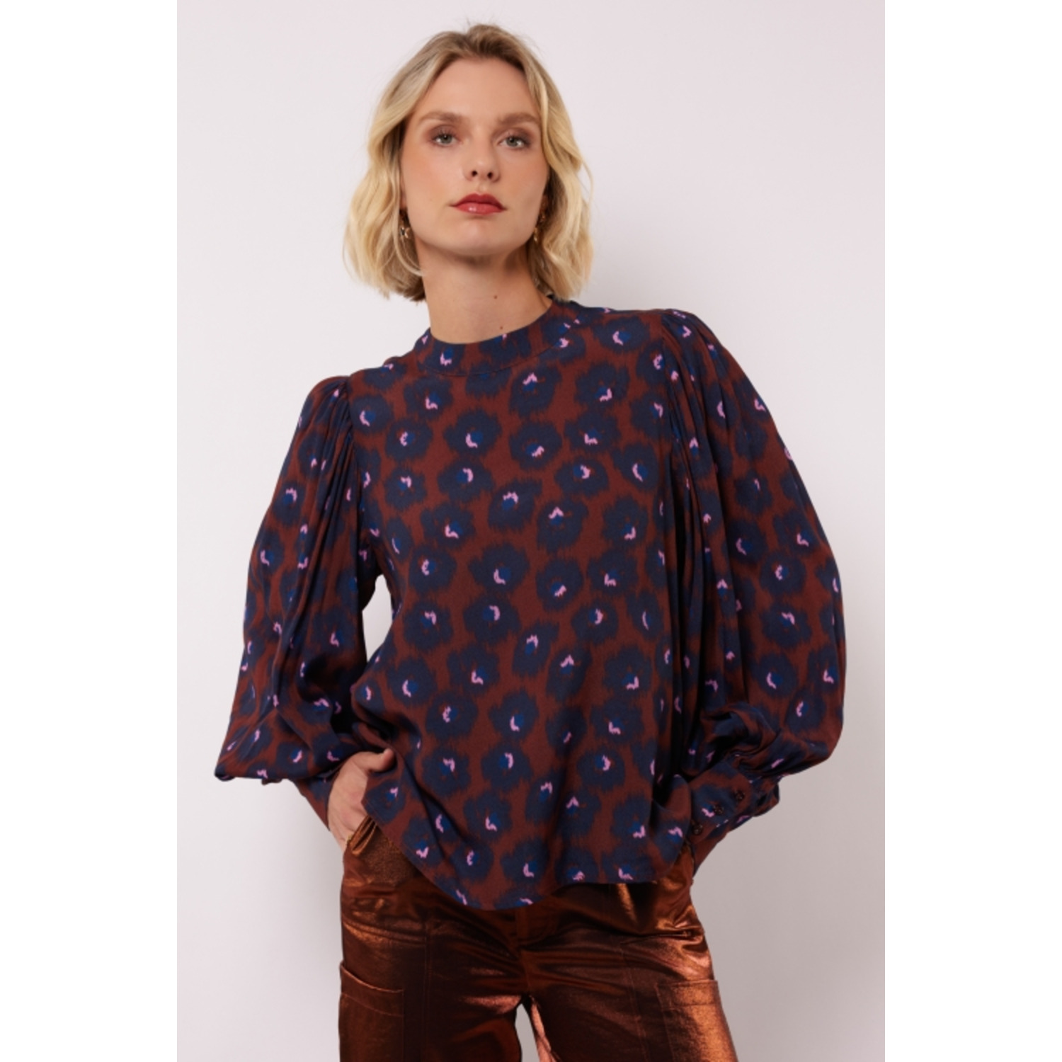 Materiaal: 100% Viscose Lengte: heup Pasvorm: regular Wasvoorschrift: 30°C fijnwas Omschrijving: De Fluresk Kalista Top is jouw nieuwe go-to piece voor een edgy maar comfy look. De loose fit en pofmouwen geven een subtiele knipoog naar de ’80s, terwijl de coole print en zachte stof zorgen voor die typische Fluresk-touch — een perfecte balans tussen stoer en vrouwelijk. Combineer hem met een jeans, pantalon of rok voor een moeiteloos stijlvolle outfit met karakter. Kleur fabrikant: rum raisan/midnight blue Halslijn: turtle neck Mouwlengte: lange mouwen Sluiting: knoopje in de nek