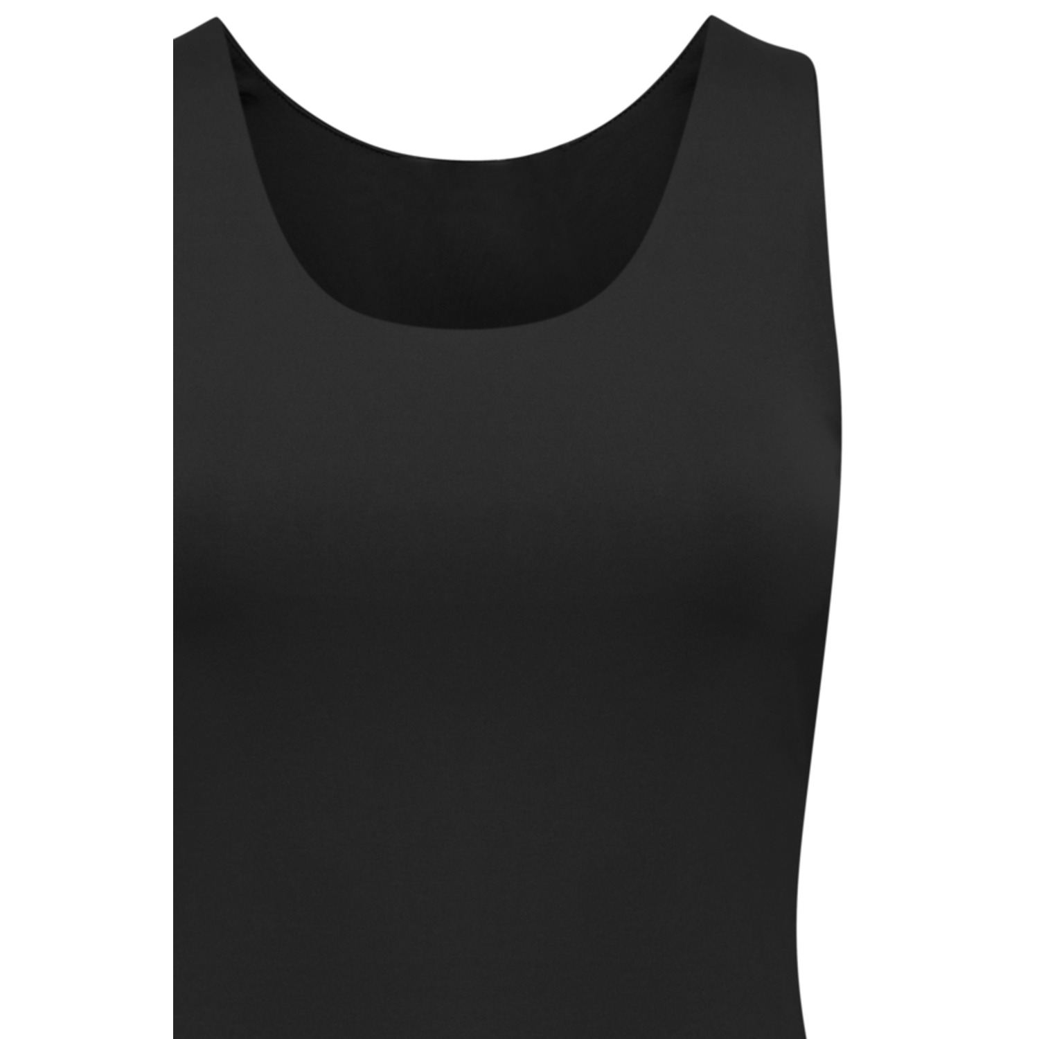 Materiaal: 95% Polyester, 5% Elastane Lengte: normale lengte Pasvorm: tight fit Wasvoorschrift: 30°C fijnwas Bijzonderheden: goede basic met aanslutende pasvorm en seamless Kleur fabrikant: black Halslijn: diepe ronde hals Mouwlengte: mouwloos