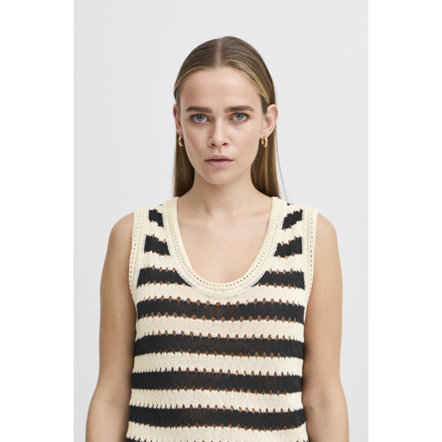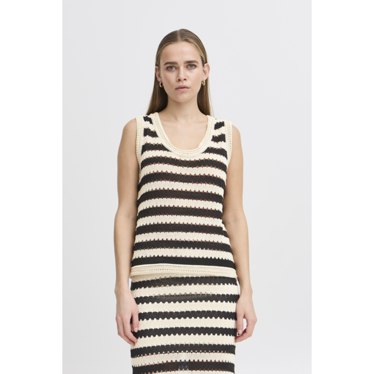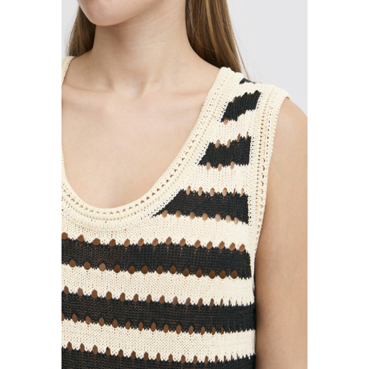 ICHI IHBirdis Gehaakte Top Zwart Beige