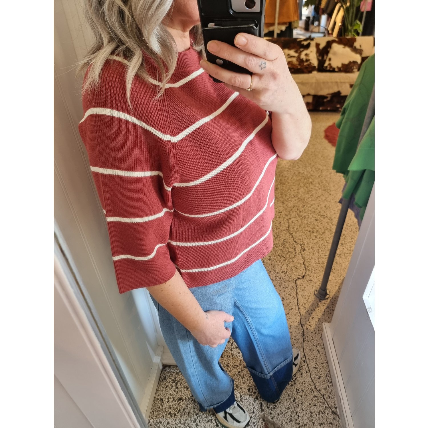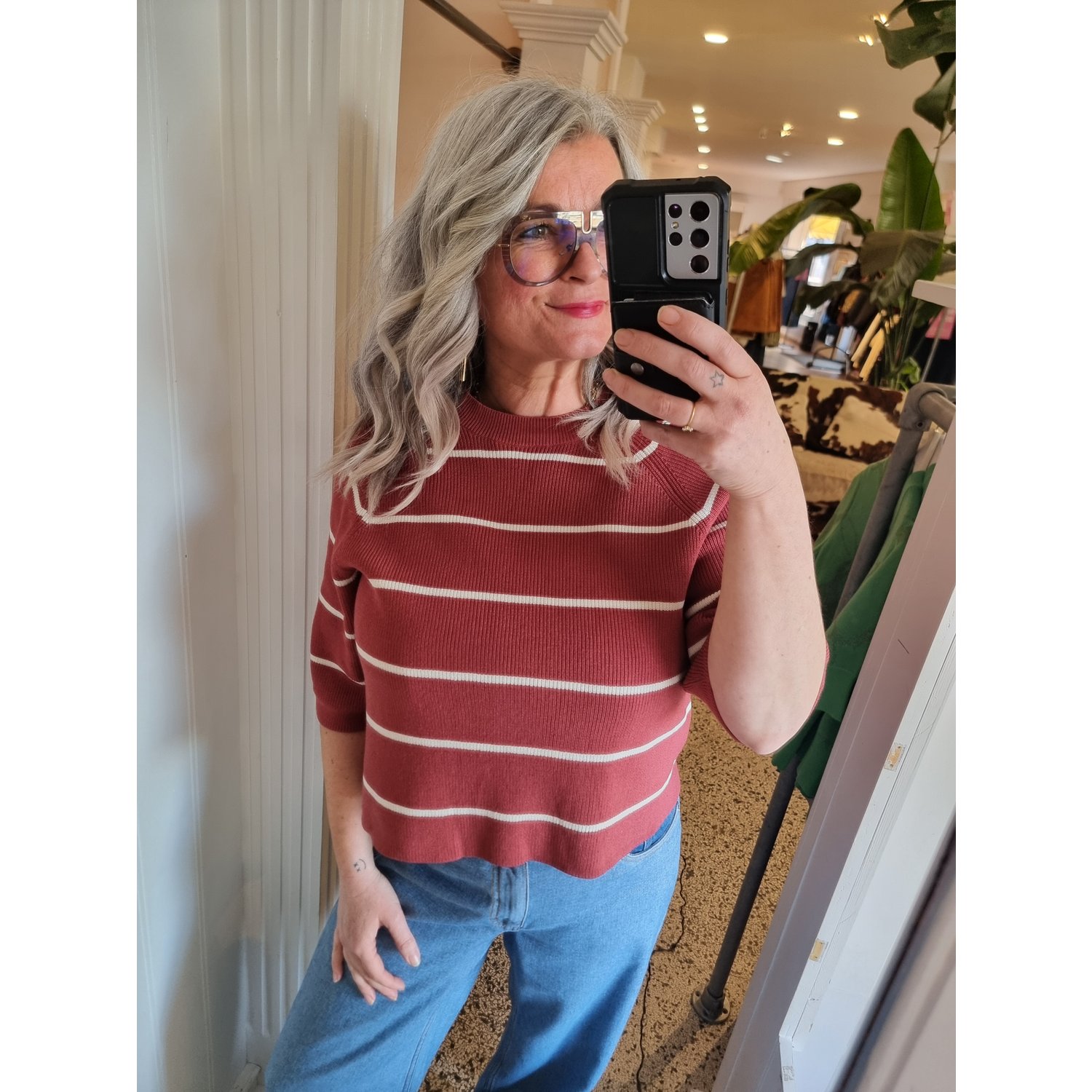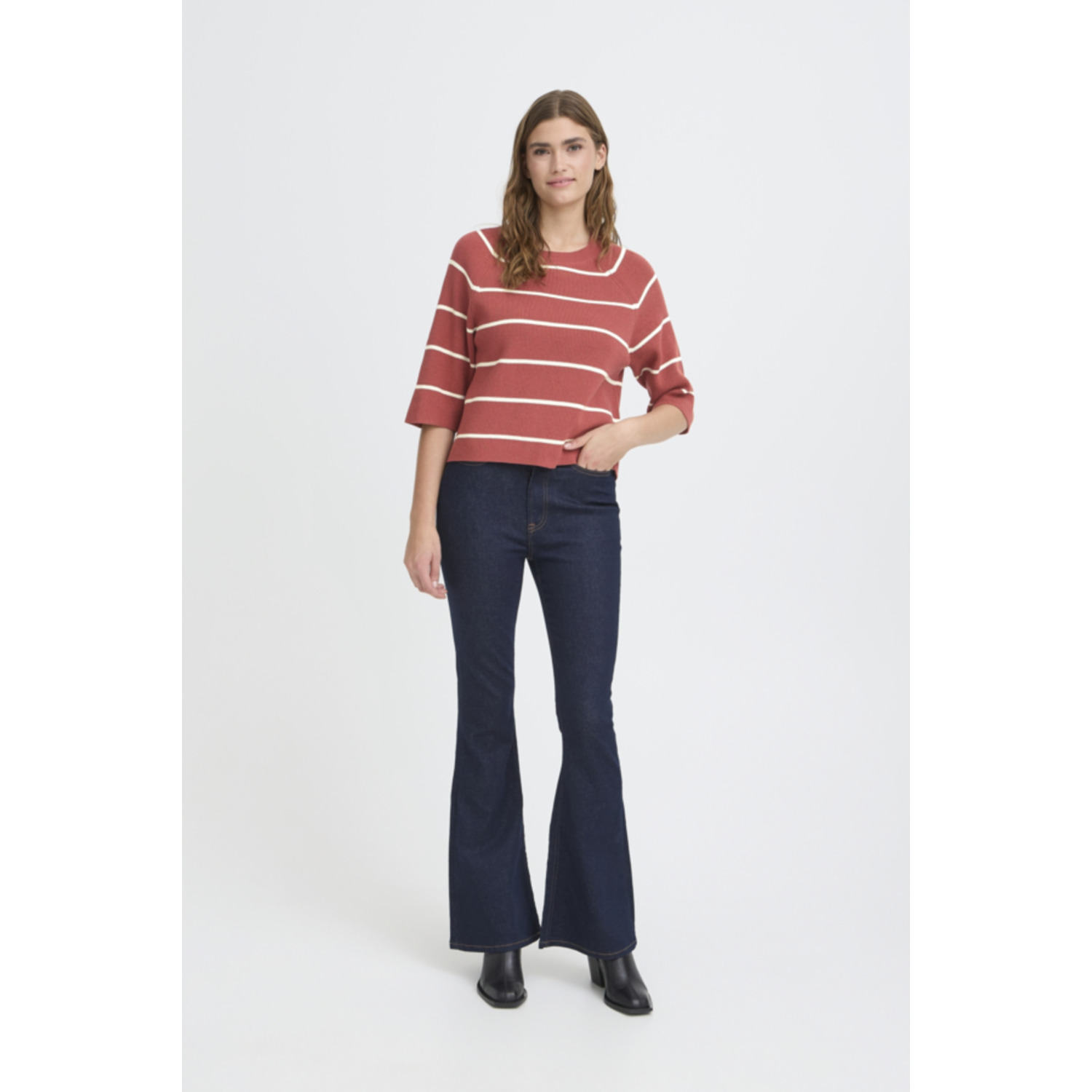 Omschrijving: De ICHI IHBoston MS top in cowhide met witte strepen is een zachte, comfortabele top van een soepele viscose mix. De 3/4 mouwen en subtiele strepen geven een speels detail aan deze basic, waardoor hij makkelijk te combineren is met jeans, rok of pantalon voor een casual chic look.