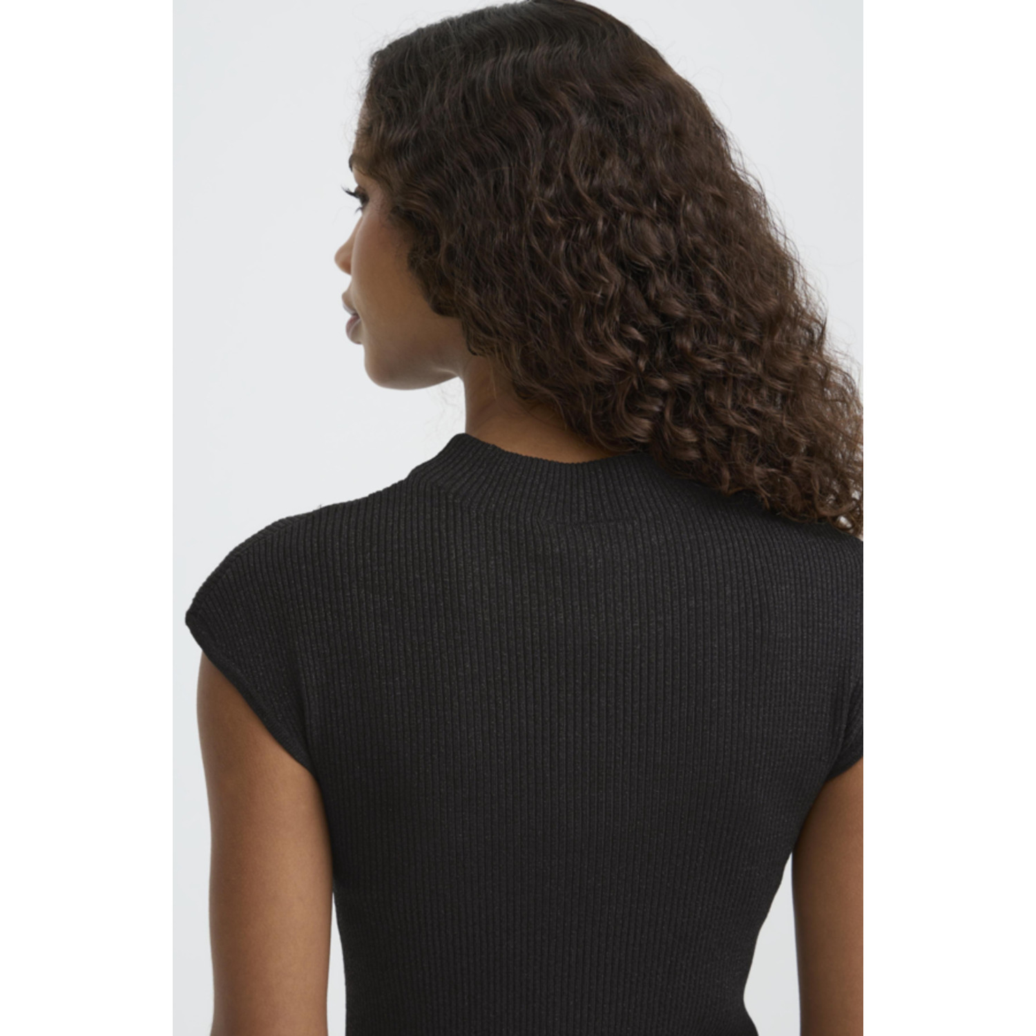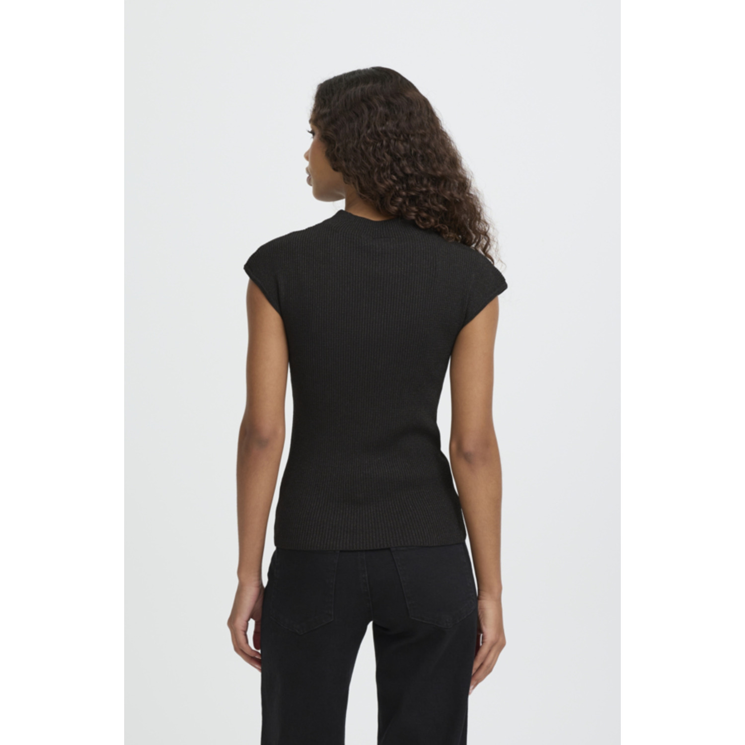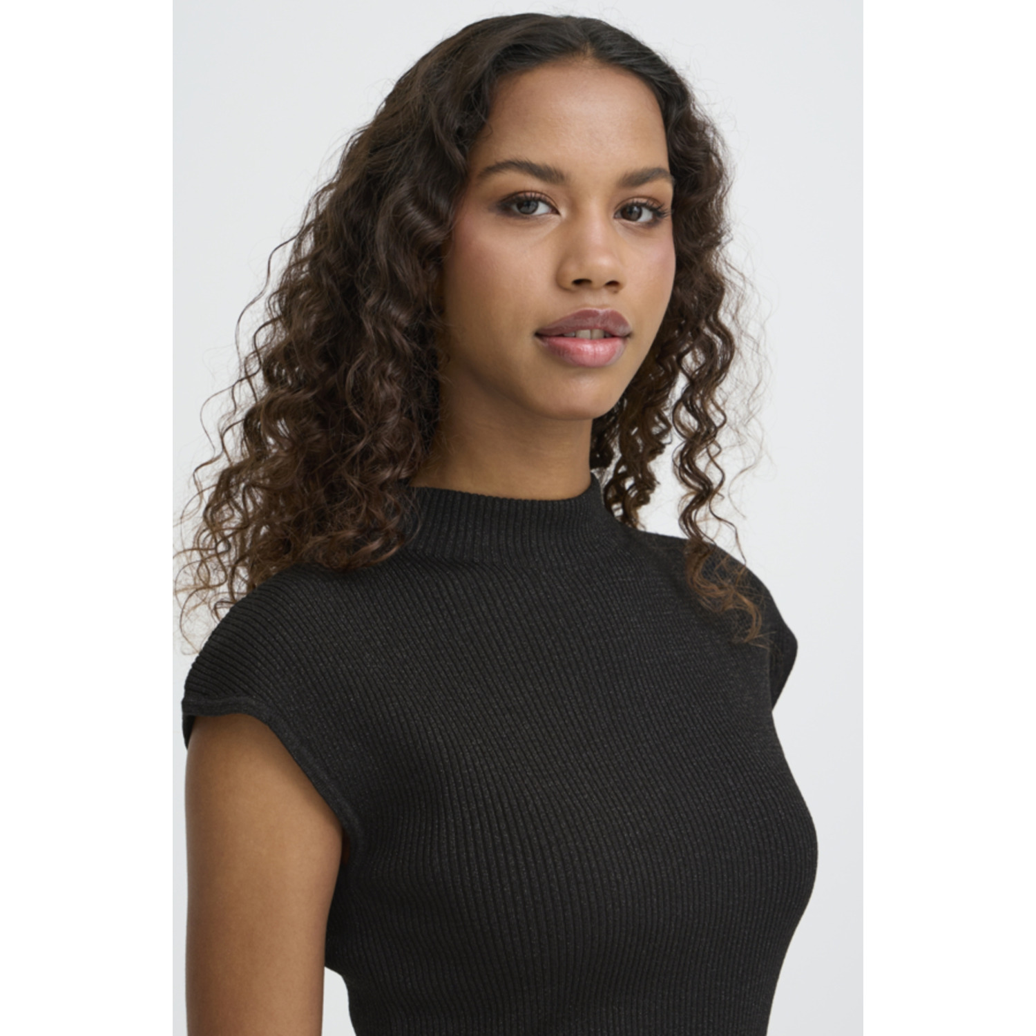 Omschrijving: De ICHI IHCody Top in zwart is een stijlvolle mouwloze top met een subtiele glitter finish. Gemaakt van een comfortabele ribstof met lichte stretch, waardoor hij mooi aansluit op het lichaam. De turtle neck geeft de top een chique en moderne uitstraling. Perfect om te dragen onder een blazer of feestelijk vest, maar ook prachtig solo tijdens een avondje uit. Een echte must-have voor het feestseizoen!