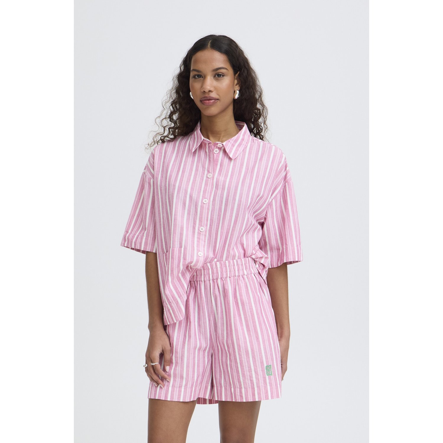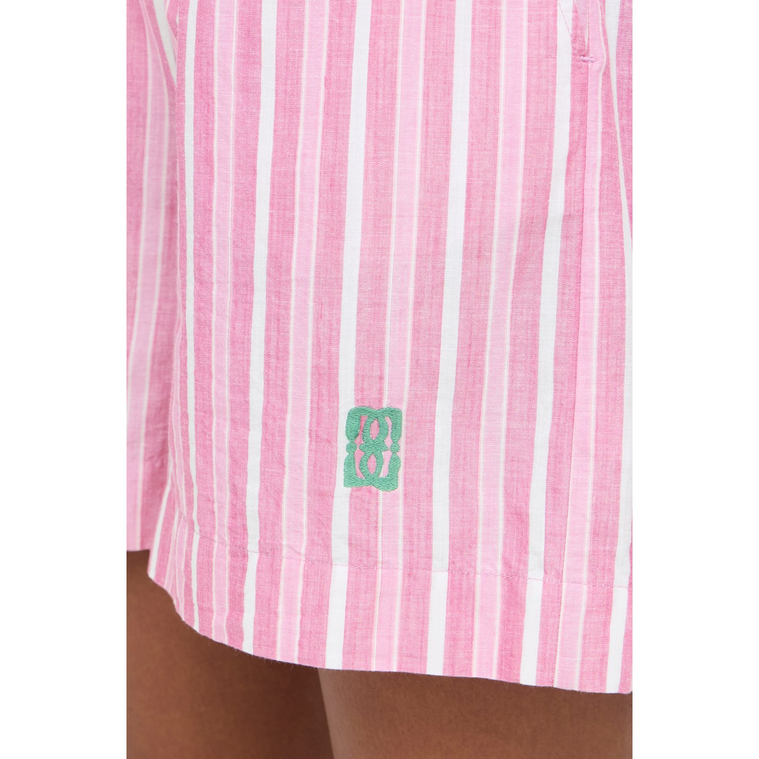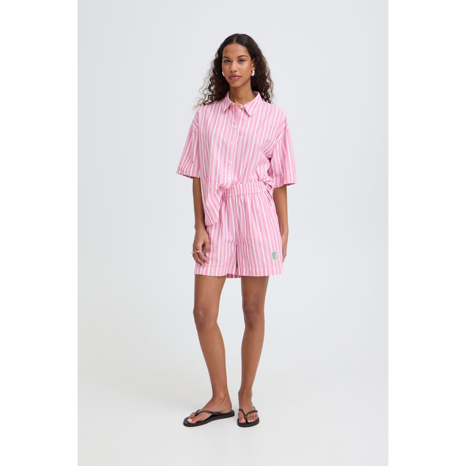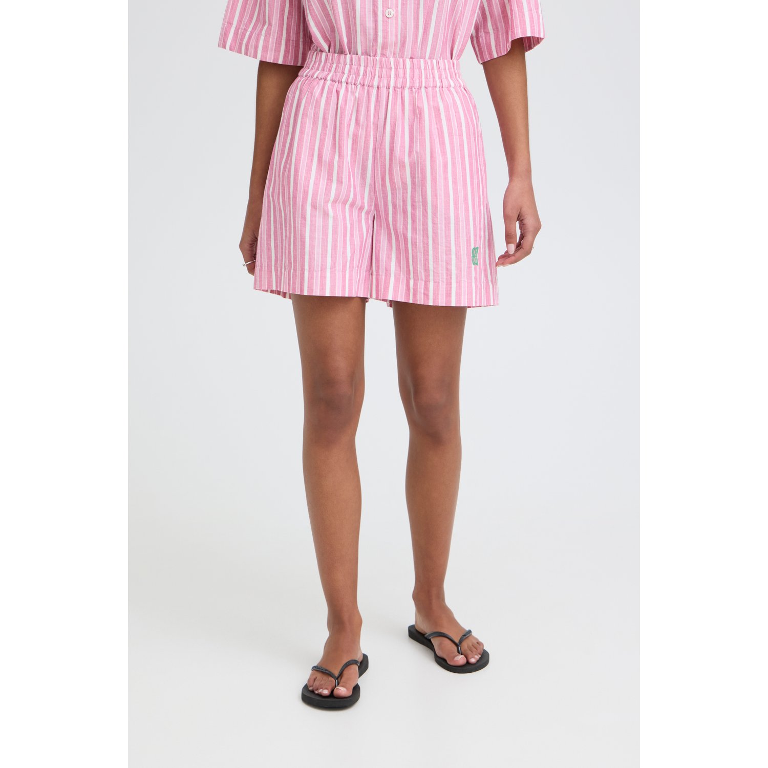 Omschrijving: De IHIndra shorts van ICHI is een frisse en speelse musthave voor het voorjaar en de zomer. De roze-witte streep geeft een vrolijke uitstraling, terwijl de elastische boord zorgt voor een comfortabele fit. Met steekzakken en een subtiel groen geborduurd embleem op de linker broekspijp krijgt de short een uniek detail. Perfect als set met de bijpassende IHIndra blouse met korte mouwen.