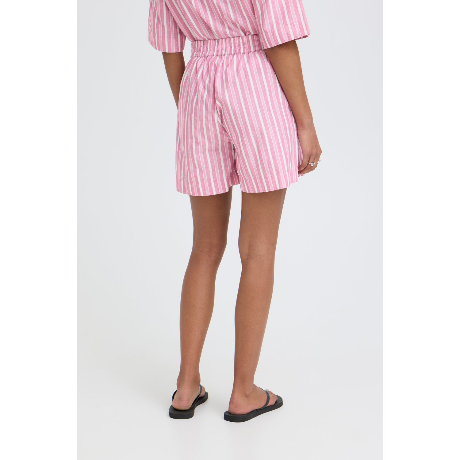 Materiaal: 100% katoen Lengte: kort Pasvorm: regular Wasvoorschrift: 30°C fijnwas Omschrijving: De IHIndra shorts van ICHI is een frisse en speelse musthave voor het voorjaar en de zomer. De roze-witte streep geeft een vrolijke uitstraling, terwijl de elastische boord zorgt voor een comfortabele fit. Met steekzakken en een subtiel groen geborduurd embleem op de linker broekspijp krijgt de short een uniek detail. Perfect als set met de bijpassende IHIndra blouse met korte mouwen. Kleur fabrikant: wild orchid stripe Sluiting: elastische boord Heuphoogte: regular Broekzakken: steekzakken