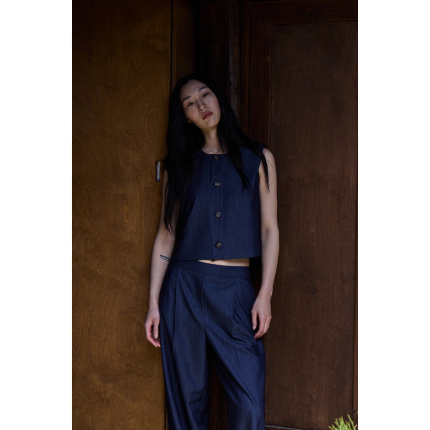 ICHI IHJumi WA Gilet Top Donker Jeans Blauw