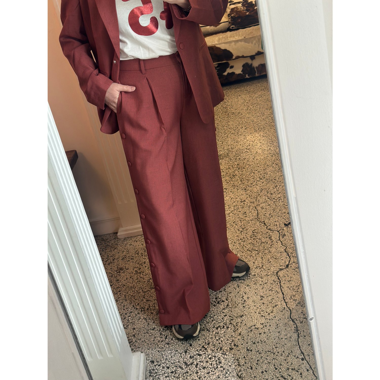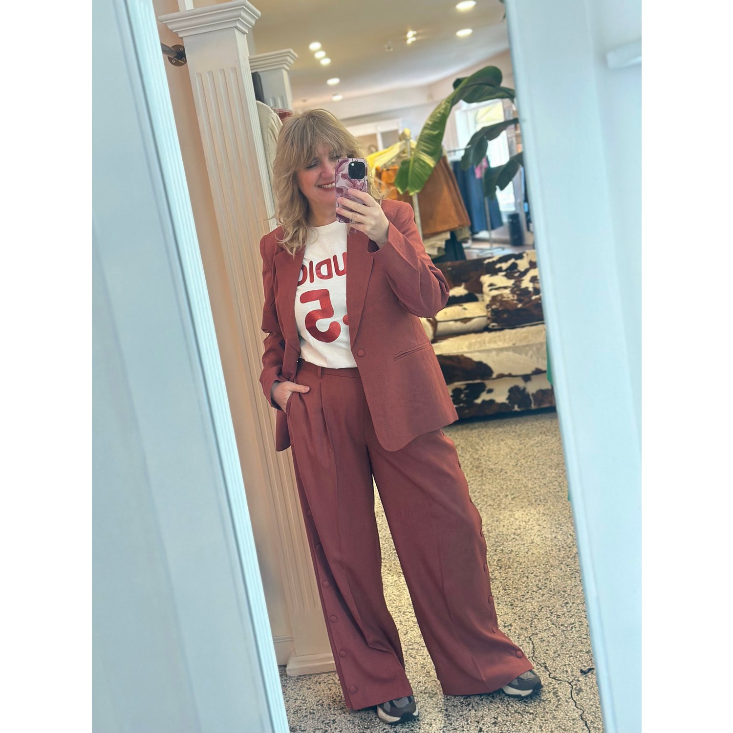 Omschrijving: De ICHI IHLexie PA12 Pants in Cowhide melange is een stijlvolle wide fit broek met een moderne twist. De decoratieve knopen langs de zijkant van de broekspijpen geven een luxe uitstraling. Perfect te combineren met de bijpassende blazer met knopendetail op de rug voor een krachtig, vrouwelijk pak.