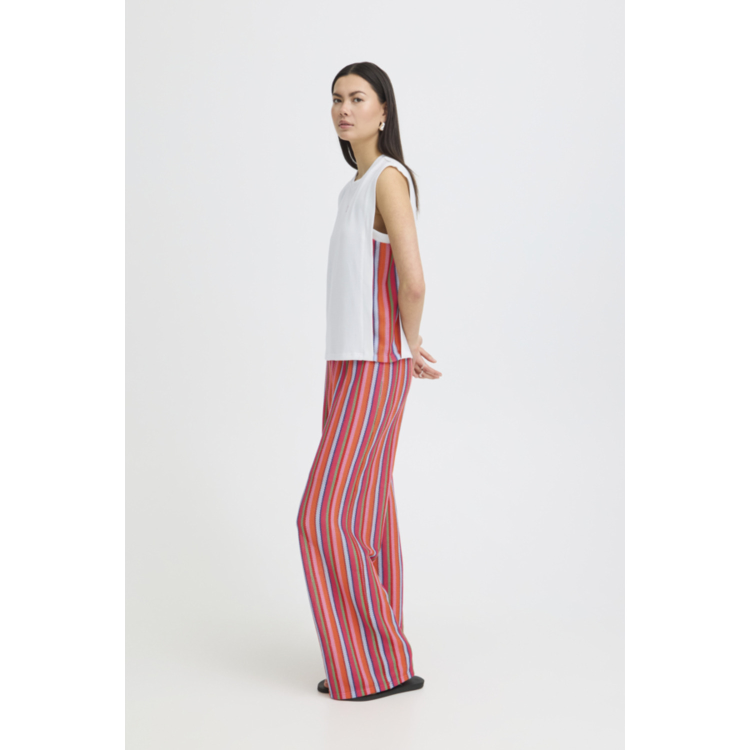 Omschrijving: De ICHI IHLibella Pants is een opvallende multicolor gestreepte broek met een comfortabele loose fit. De elastische tailleband zorgt voor een fijne pasvorm en extra draagcomfort. De luchtige stof en speelse strepen geven de broek een frisse, zomerse uitstraling. Perfect om te combineren met de bijpassende tops uit dezelfde serie.