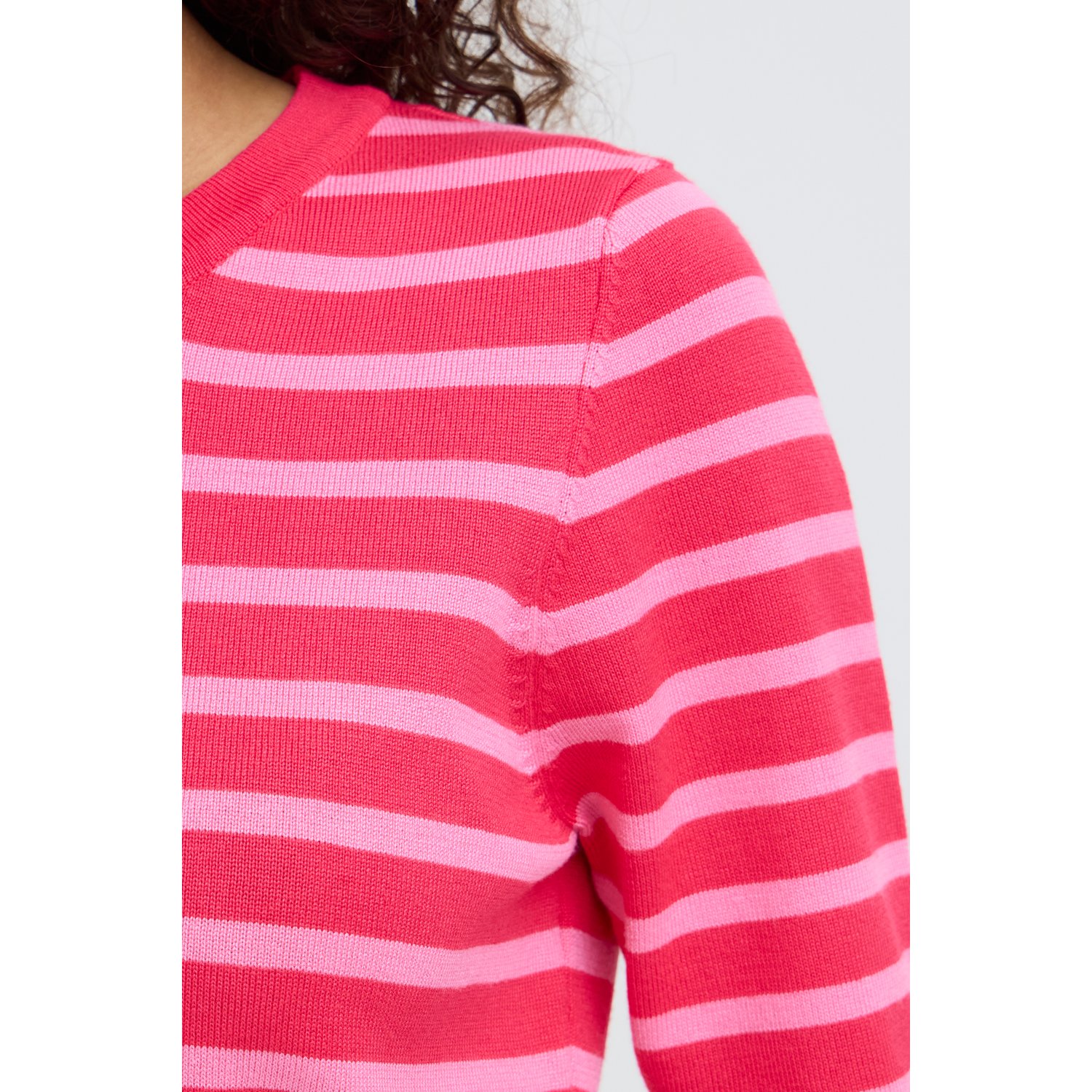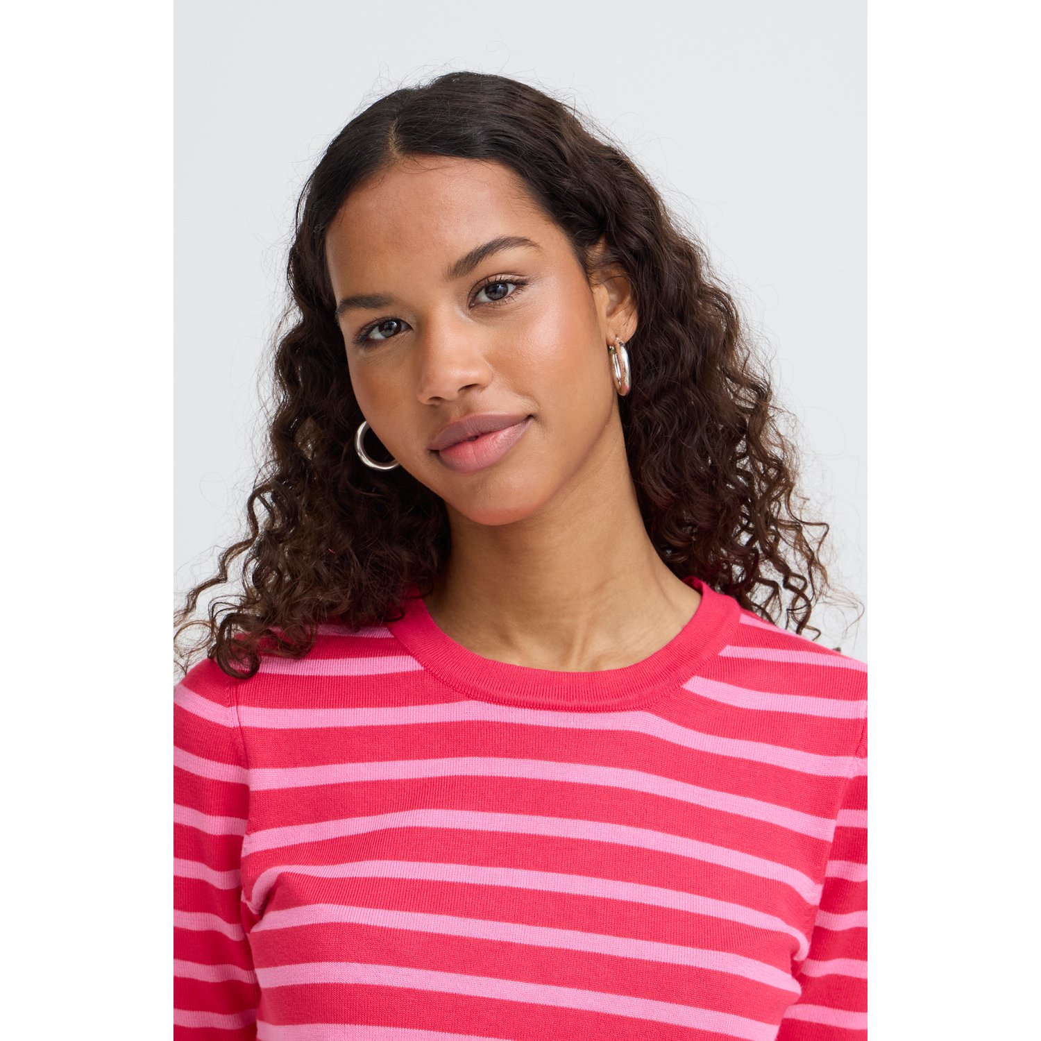 Omschrijving: De IHLuls O-Neck top van ICHI is een vrolijke toevoeging aan je garderobe. Deze fijngebreide top in viscose voelt zacht en comfortabel aan en heeft een mooie, soepele fit. De lichtroze en hardroze strepen geven een speelse en frisse uitstraling. Dankzij de ronde hals en korte mouwen is dit een perfecte basic met nét dat beetje extra.