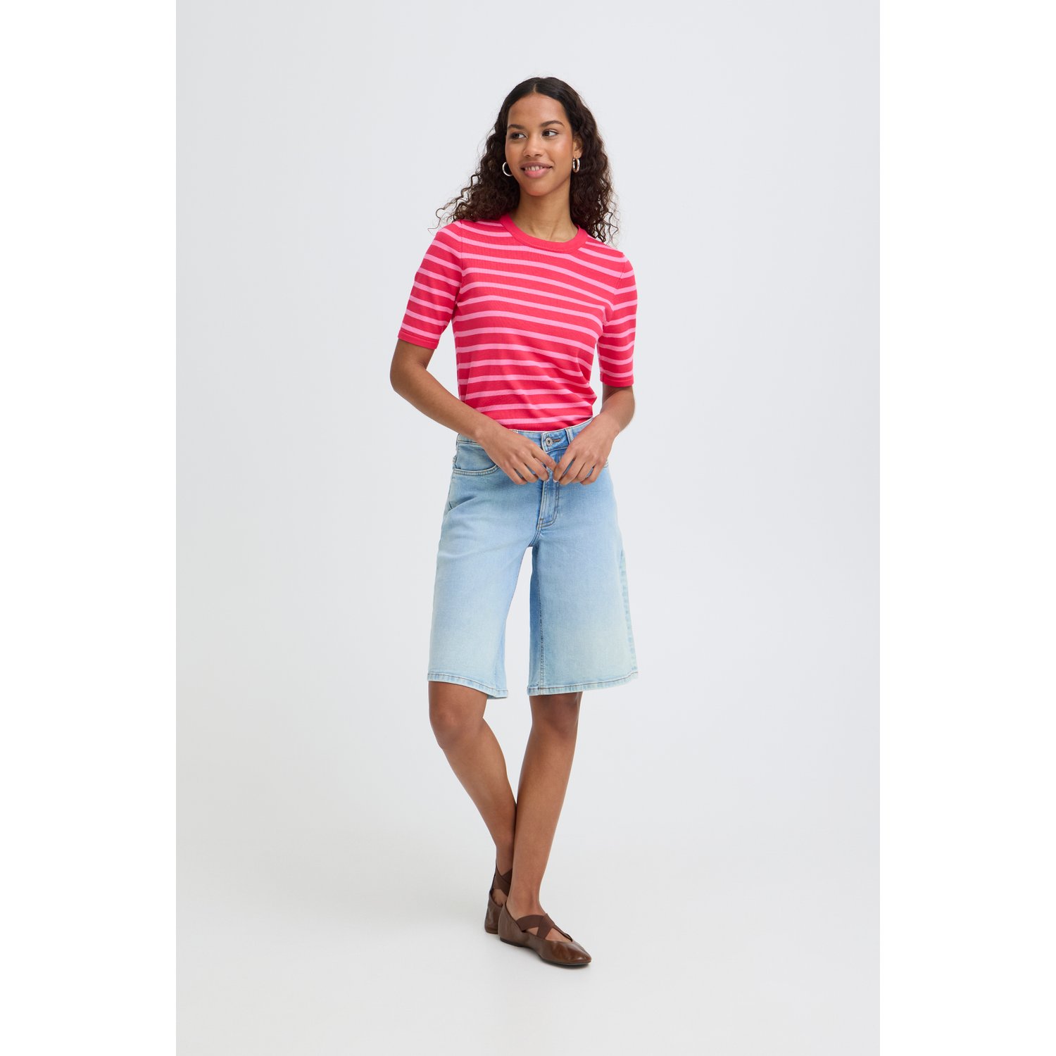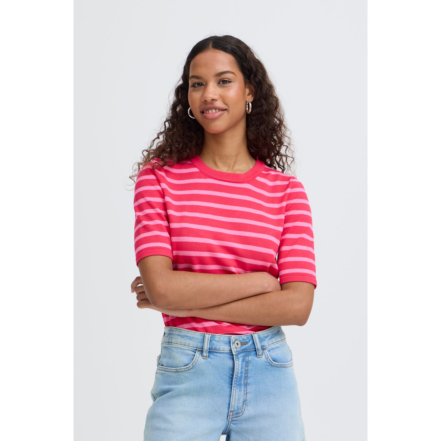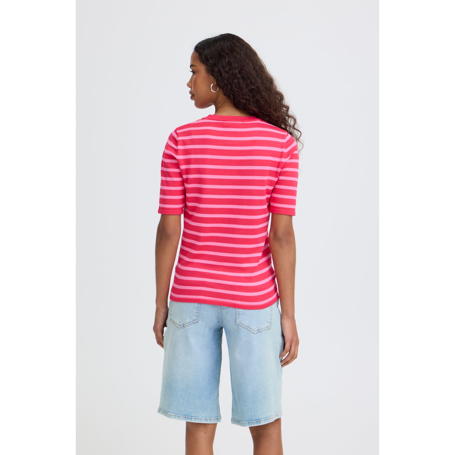 ICHI IHLuls O-Neck SS Gestreept Roze