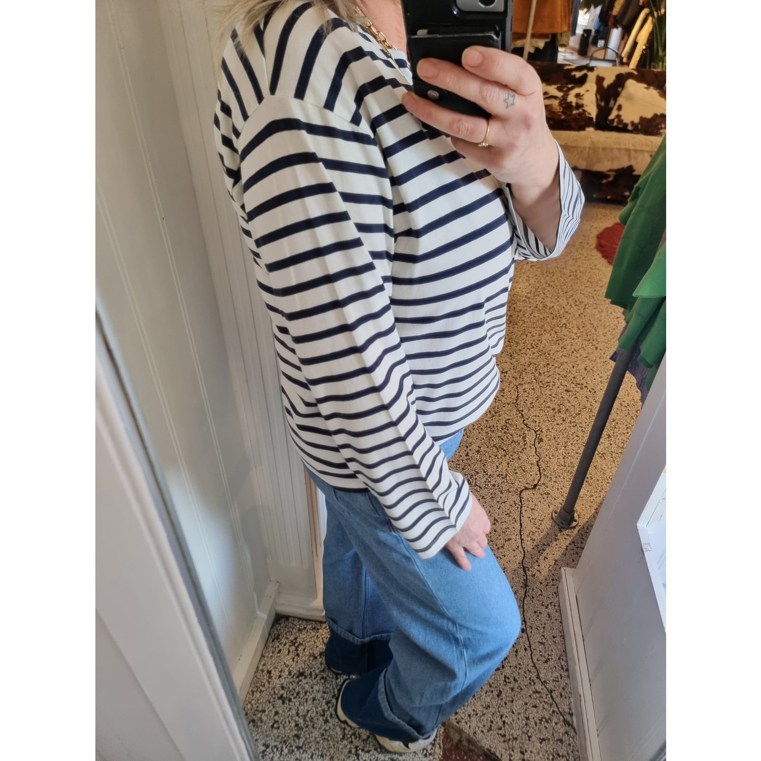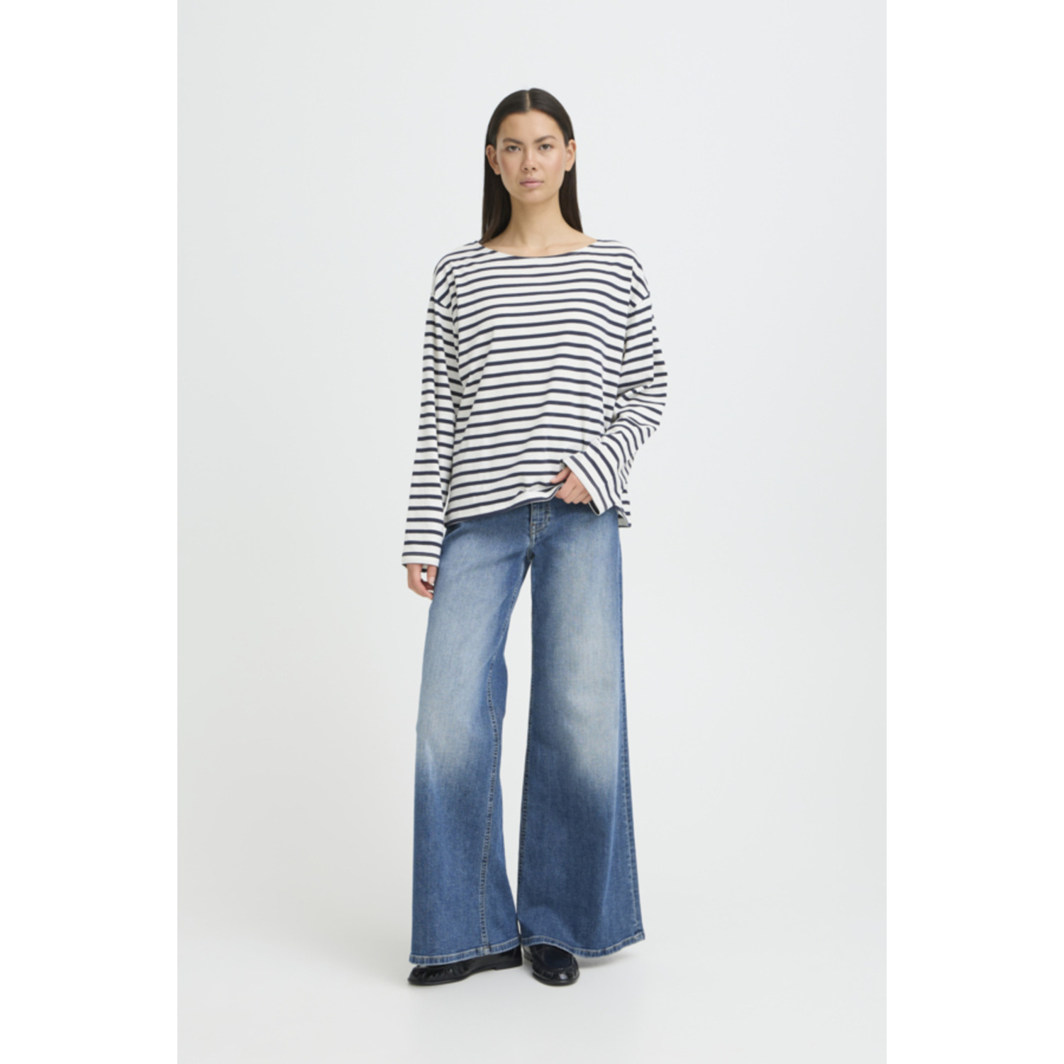Materiaal: 97% Cotton, 3% Elastane Lengte: regular Pasvorm: casual Wasvoorschrift: 30°C fijnwas Omschrijving: De ICHI IHMira Boatneck Top in blauw-wit is een tijdloze basic met een casual fit. De boothals geeft de top een vrouwelijke uitstraling, terwijl de katoenmix met elastaan zorgt voor optimaal draagcomfort. Perfect om eindeloos te combineren, zowel casual als gekleed. Kleur fabrikant: total eclips Halslijn: boothals Mouwlengte: lange mouwen