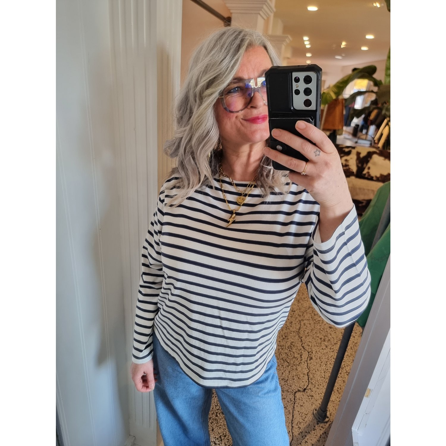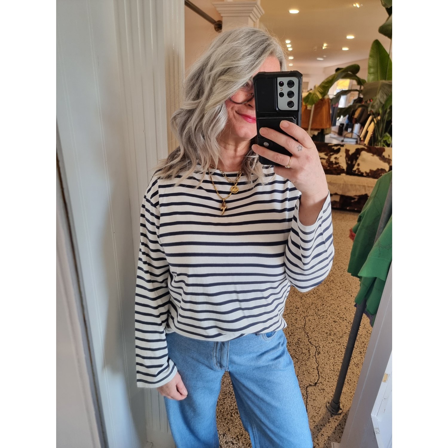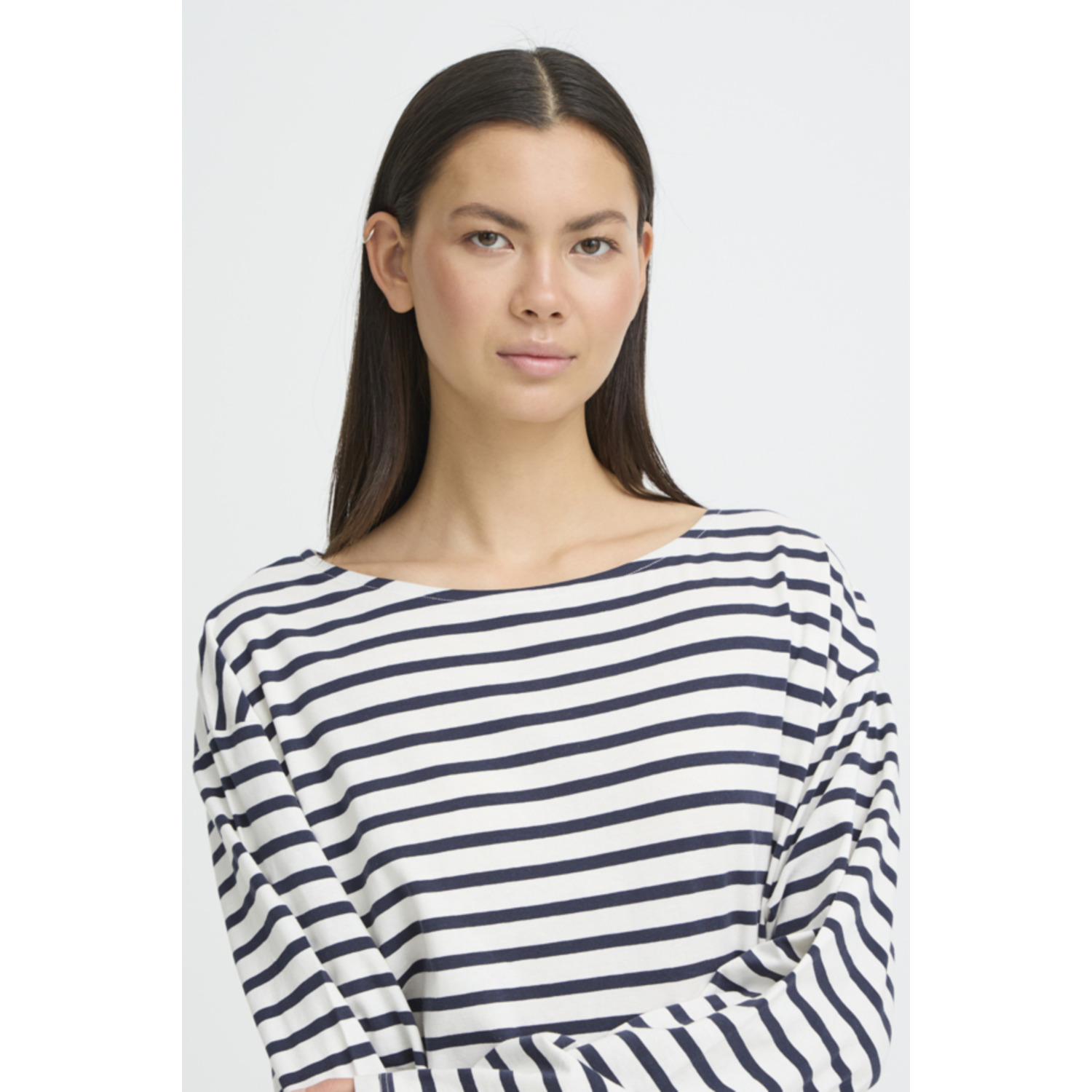 ICHI IHMira Striped Boatneck Top Blauw Wit
