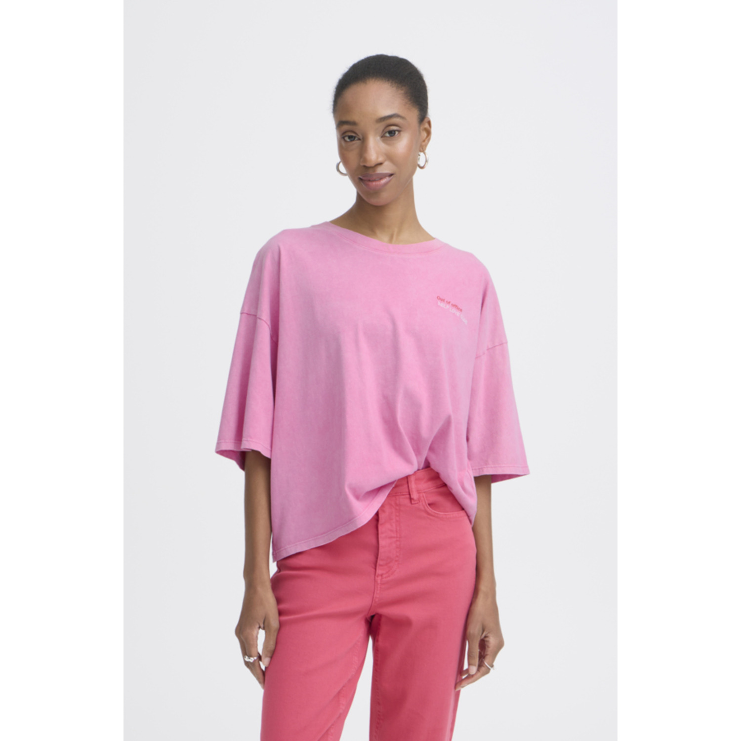Materiaal: 100% katoen Lengte: normaal Pasvorm: loose fit Wasvoorschrift: 30°C fijnwas Omschrijving: Het ICHI IHNica Oversized T-Shirt in een mooie roze kleur is een echte eyecatcher voor het voorjaar en de zomer. Het shirt heeft een comfortabele oversized pasvorm en een opvallende kersenprint op de rug die zorgt voor een speelse look. Gemaakt van een zachte katoenkwaliteit waardoor het heerlijk draagt. Kleur fabrikant: wild orchid Halslijn: rond Mouwlengte: korte mouwen