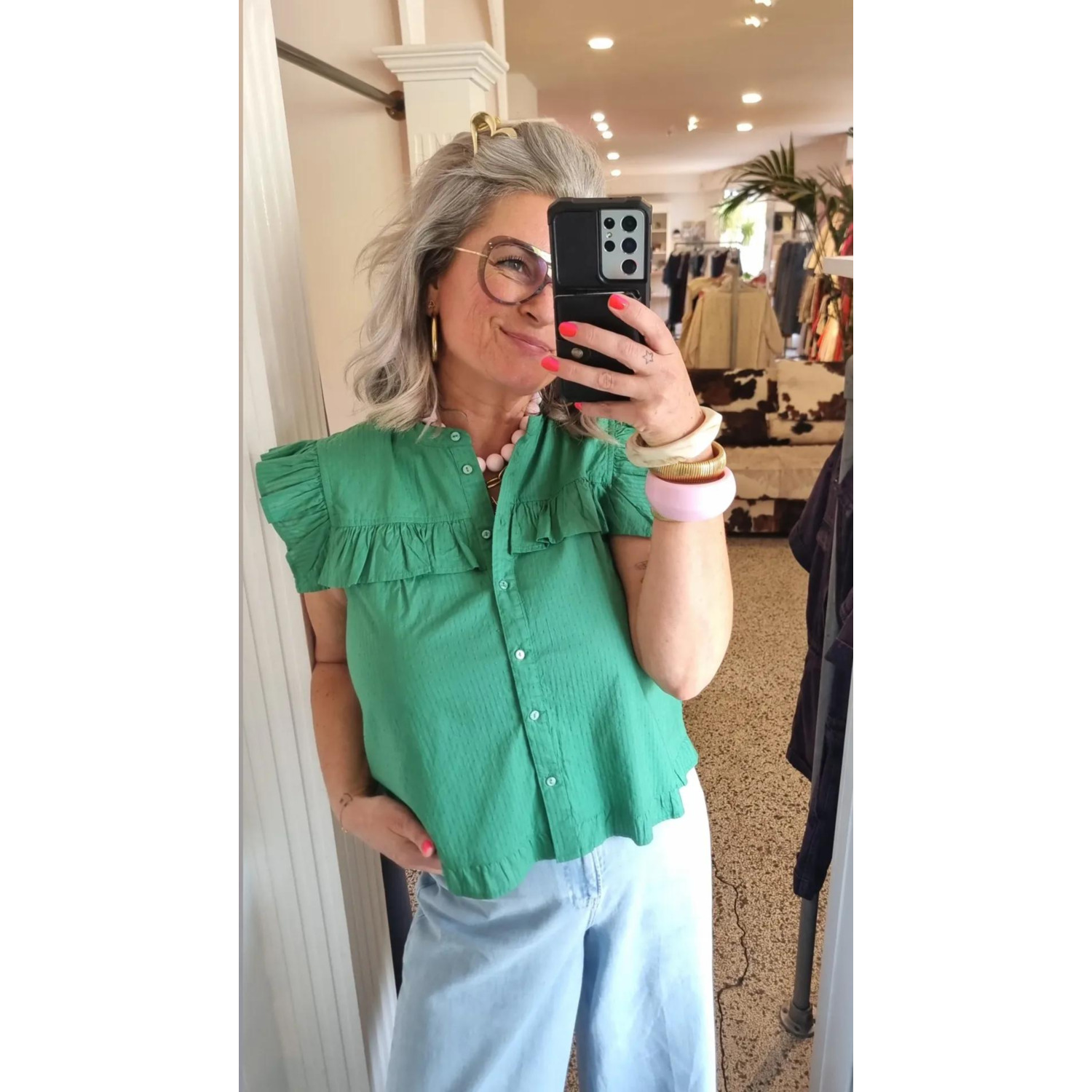 ICHI IHRamsay Ruffle Blouse Top Groen