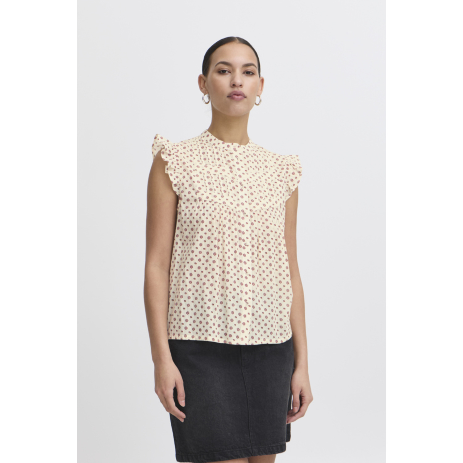 Bijzonderheden: De Ursula Top van Ichi heeft roezels bij de schouders en is gemaakt van 100% katoen