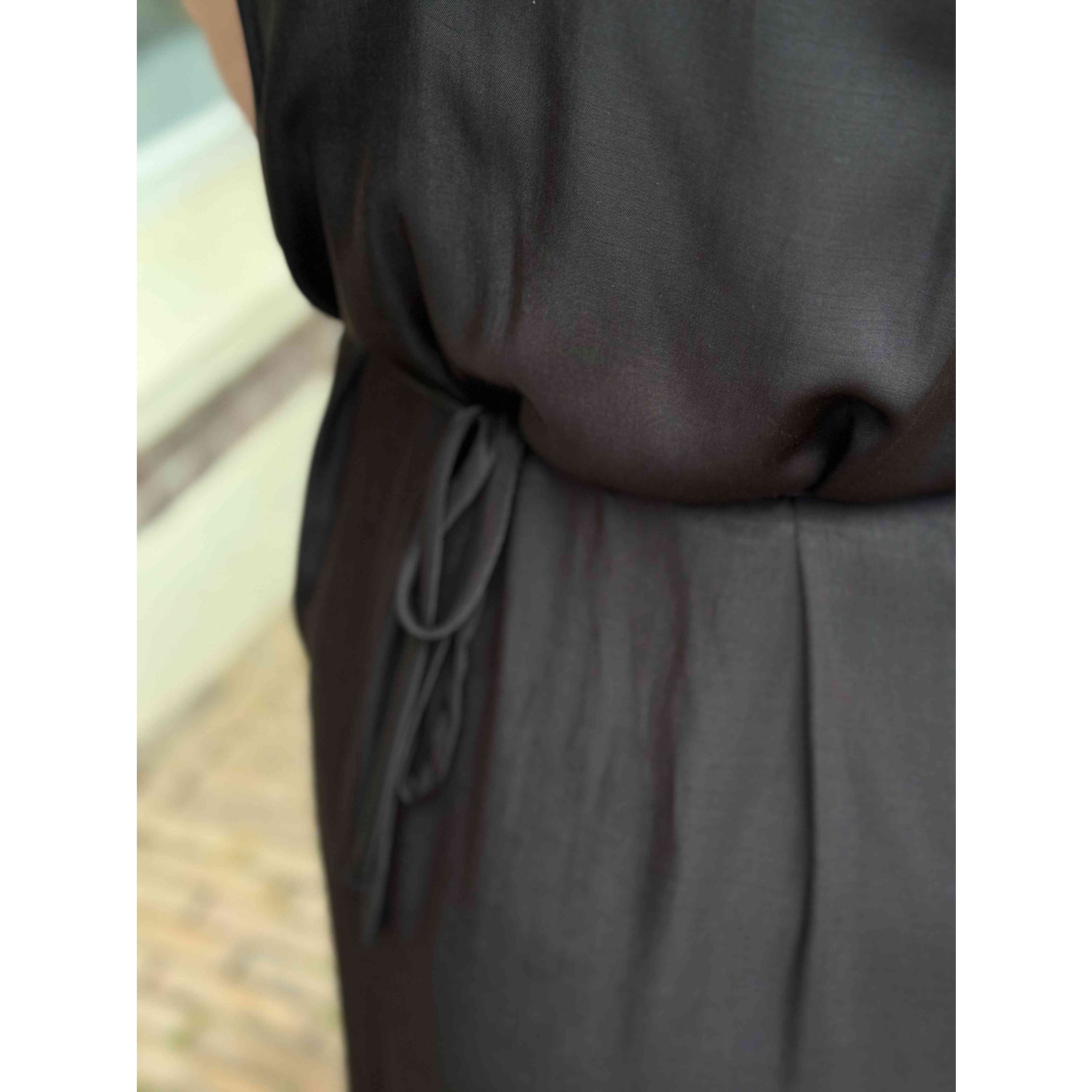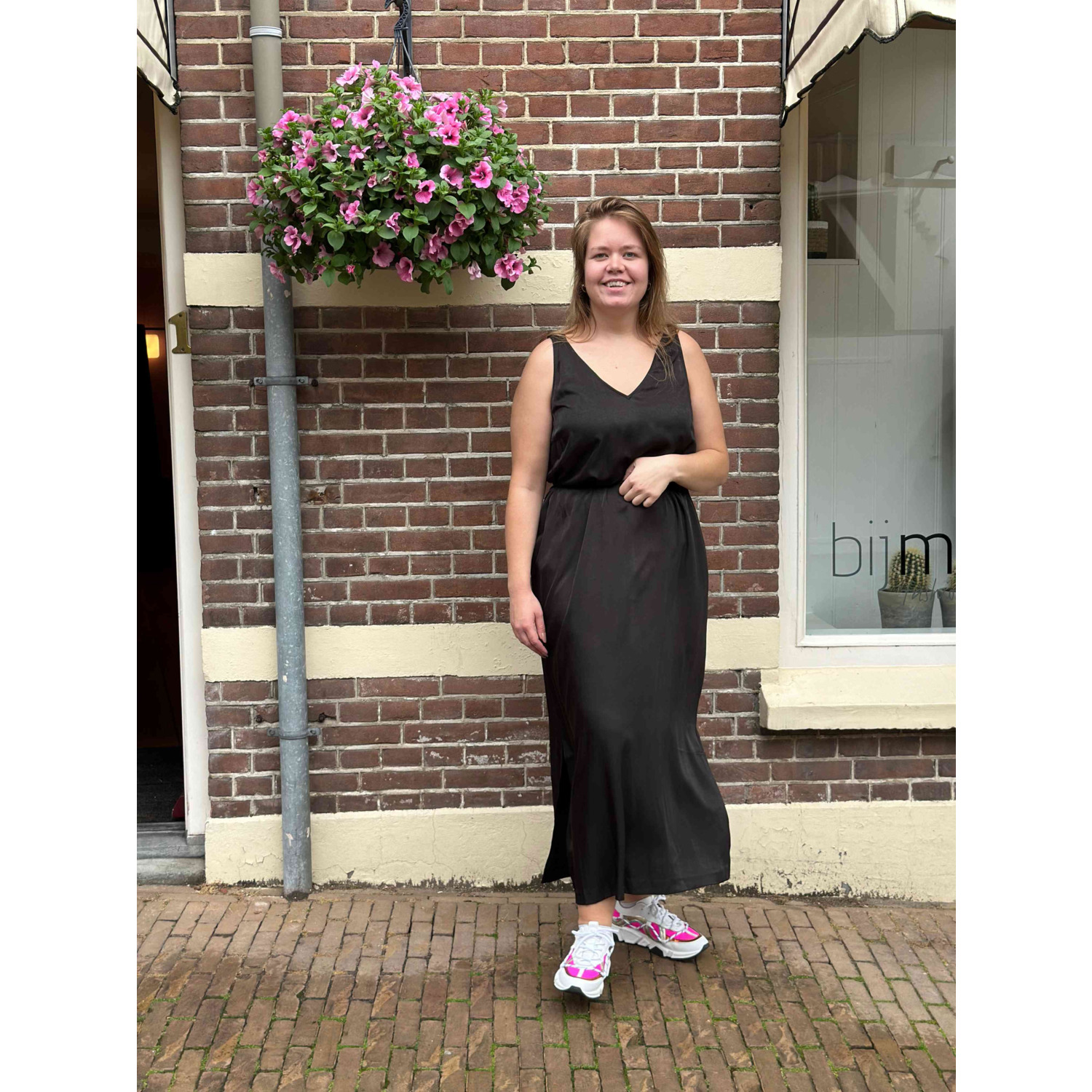 Materiaal: 50% Polyester,50% Viscose Lengte: Lange Lengte Pasvorm: Regular Fit Wasvoorschrift: 30°C Fijnwas Bijzonderheden: Prachtige viscose satijnen jurk voor een feest of een heerlijk zomerse dag, centuur los erbij Kleur fabrikant: Black Halslijn: V hals Mouwlengte: Mouwloos