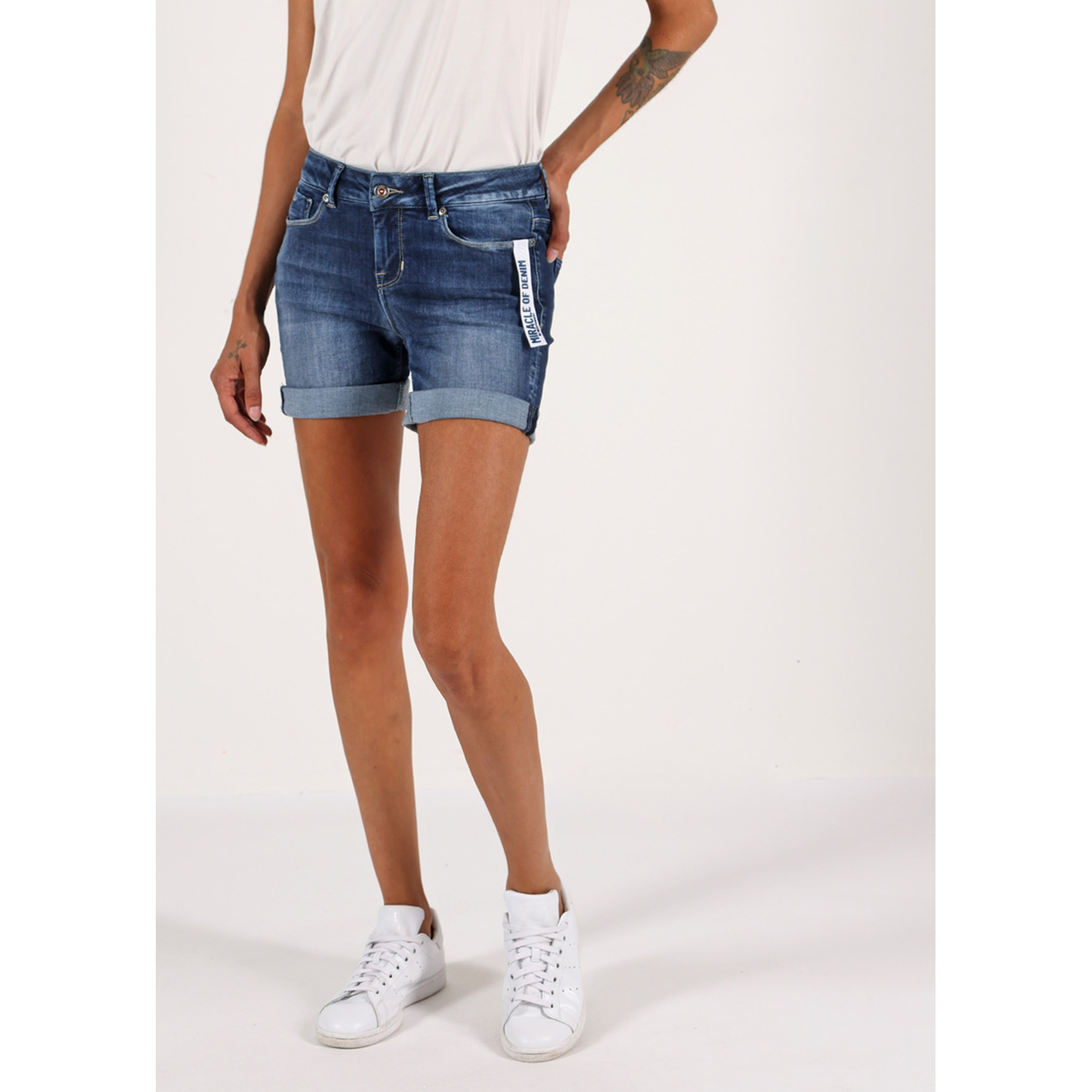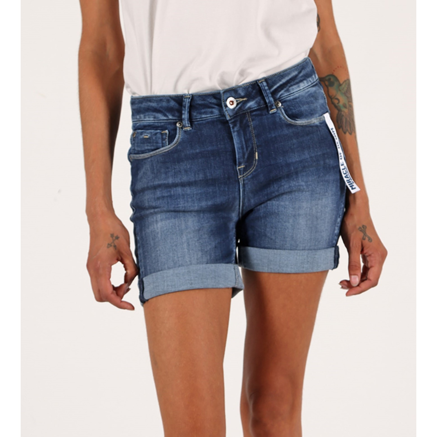 Materiaal: 82% katoen, 15% polyester, 3% elastaan Lengte: korte lengte Pasvorm: skinny fit Wasvoorschrift: 30°C, niet drogen in de droger Kleur fabrikant: rivella blue Sluiting: knoop- en ritssluiting Heuphoogte: medium Broekzakken: 5-pocket model
