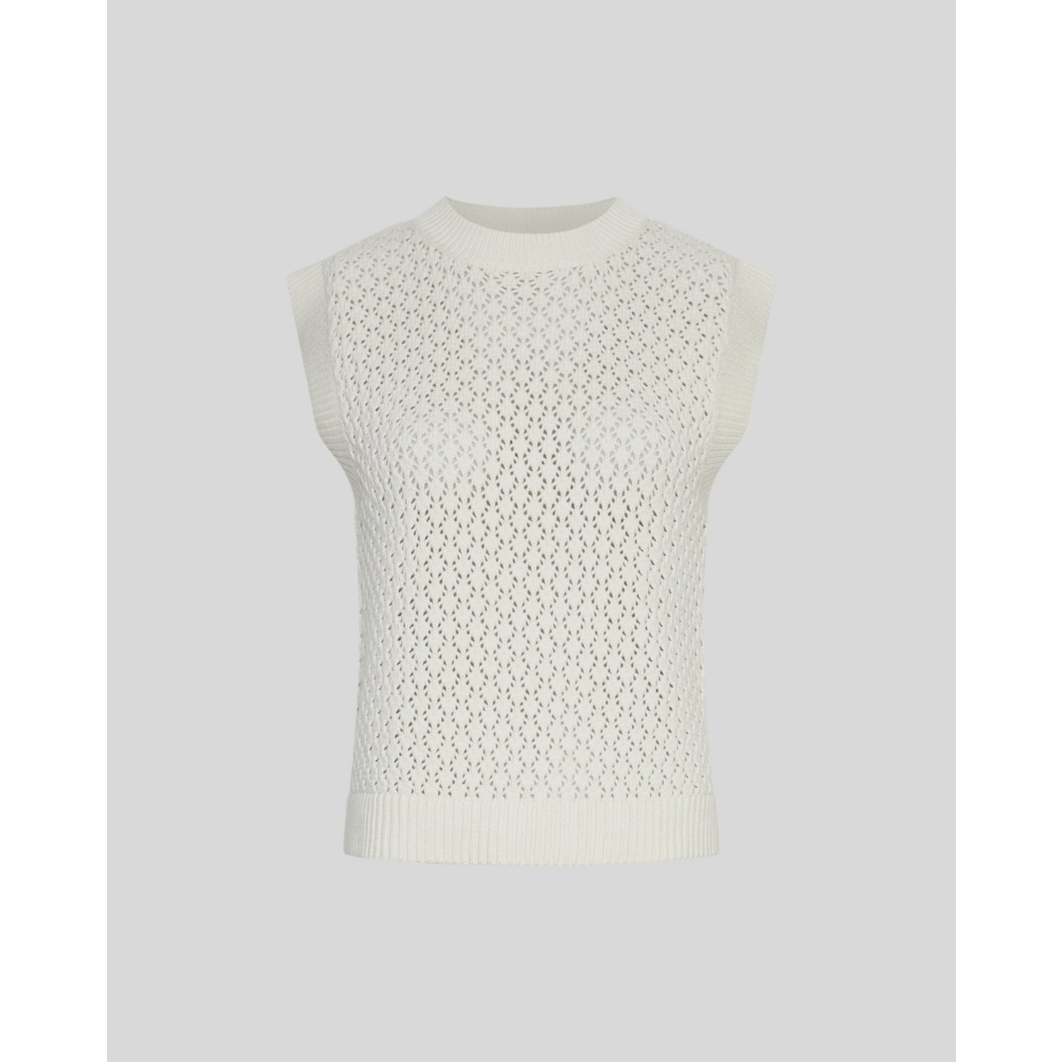 Omschrijving: De Daina top van MSCH Copenhagen is een stijlvolle mouwloze knit, gemaakt van een zachte katoenmix. De minimalistische look en fijne structuur maken dit item een veelzijdige basic die je moeiteloos combineert. Draag solo op warme dagen of als gelaagd stuk onder een blazer of vest voor een moderne uitstraling.