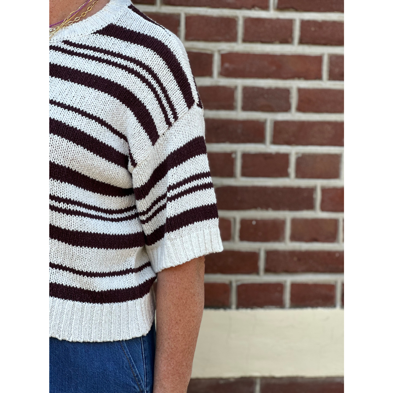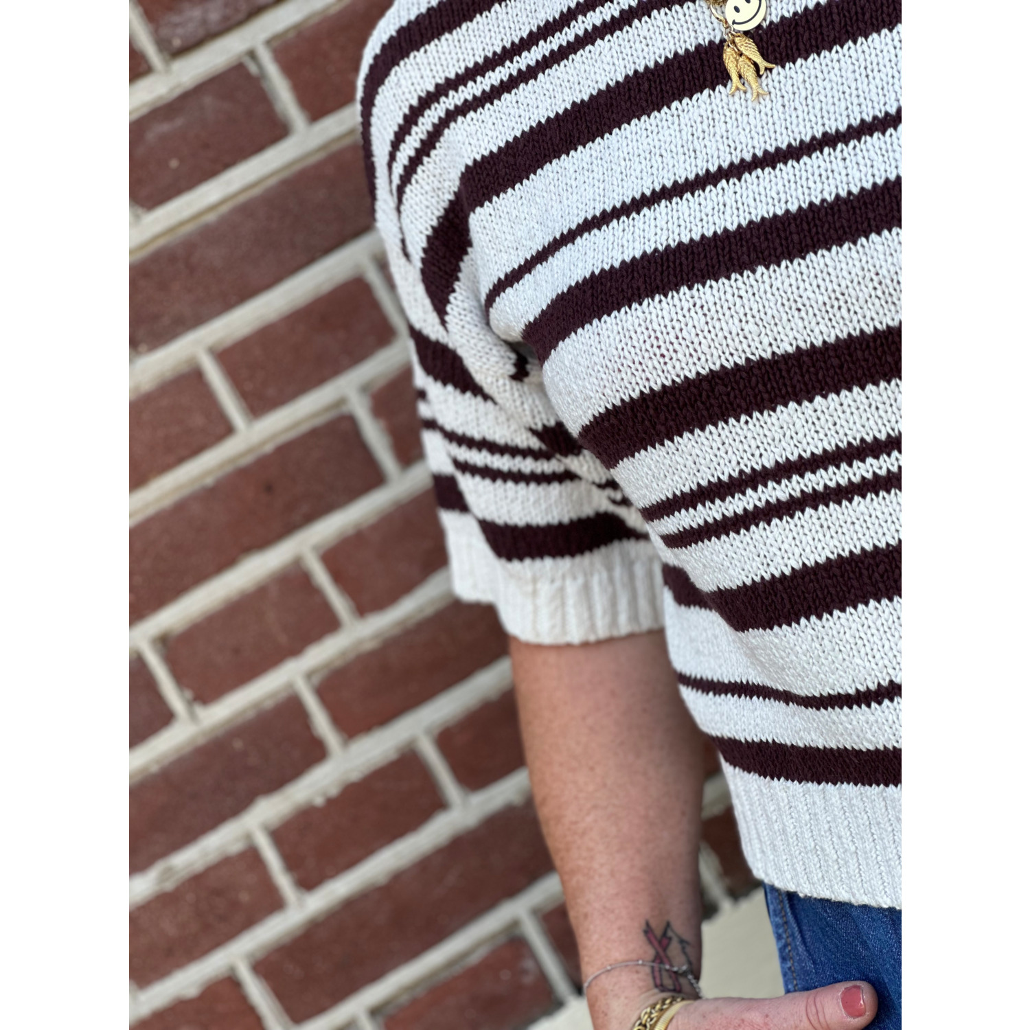 Bijzonderheden: trui met korte mouwen en horizontale strepen in een zacht materiaal. Deze zachte gebreide trui met ronde hals en verlaagde schouders kan een moeiteloze toevoeging zijn aan elke outfit en een sterke basis vormen voor een veelzijdige garderobe. Combineer met je favoriete jeans, een luchtige zomerrok of een elegante broek en je hebt in een handomdraai een moeiteloos chique outfit.