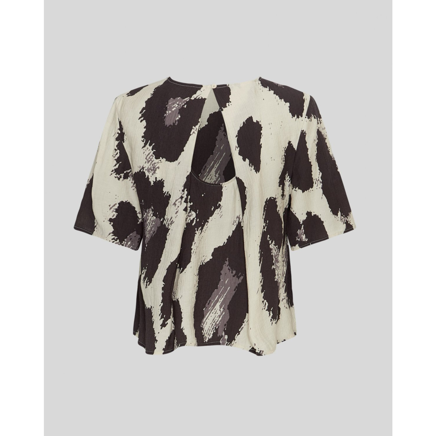 Omschrijving: De MSCH Copenhagen Karalie Jusia 2/4 Top heeft een lichte, luchtige uitstraling met een grafische print geïnspireerd op een moderne luipaardlook. Het model heeft korte mouwen, een relaxte pasvorm en een kleine opening aan de achterkant voor een vrouwelijke touch. De zachte stof valt soepel en draagt heerlijk comfortabel.