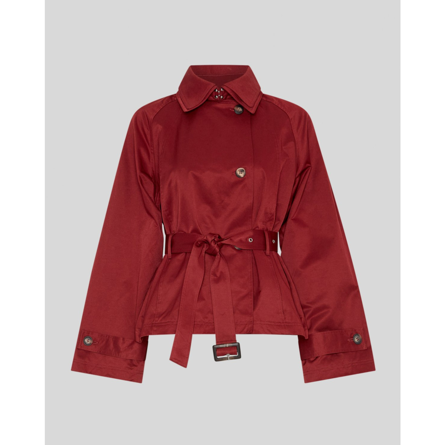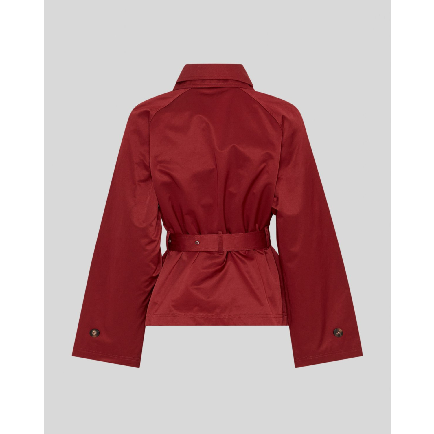 Omschrijving: De Kishia Blix jacket van MSCH Copenhagen in Syrah Rood is een moderne trenchcoat in een kort model. De rijke rode kleur geeft een opvallende, elegante uitstraling, terwijl de tijdloze snit zorgt voor veelzijdigheid. Perfect om je outfit mee af te maken, zowel casual als chic. Een echte eyecatcher dit seizoen.