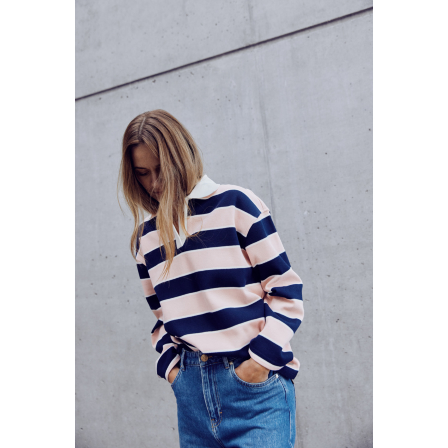 Materiaal: 70% Polyester, 30% Katoen Lengte: heup Pasvorm: loose fit Wasvoorschrift: 30°C fijnwas Omschrijving: Het Pulz PZAriel Polo Shirt is helemaal volgens de trend van nu! Dit gestreepte shirt in blauw en roze heeft een frisse witte polo kraag voor een sportieve, preppy uitstraling. De comfortabele pasvorm maakt het perfect voor elke dag. Leuk te combineren met een jeans of wide leg pantalon voor een moderne look. Kleur fabrikant: navy rose Halslijn: kraag Mouwlengte: lange mouwen Sluiting: knopen