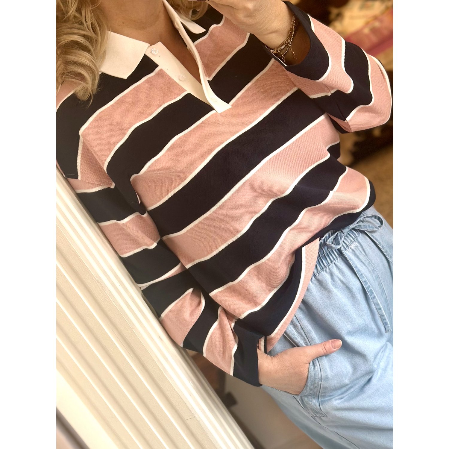 Omschrijving: Het Pulz PZAriel Polo Shirt is helemaal volgens de trend van nu! Dit gestreepte shirt in blauw en roze heeft een frisse witte polo kraag voor een sportieve, preppy uitstraling. De comfortabele pasvorm maakt het perfect voor elke dag. Leuk te combineren met een jeans of wide leg pantalon voor een moderne look.