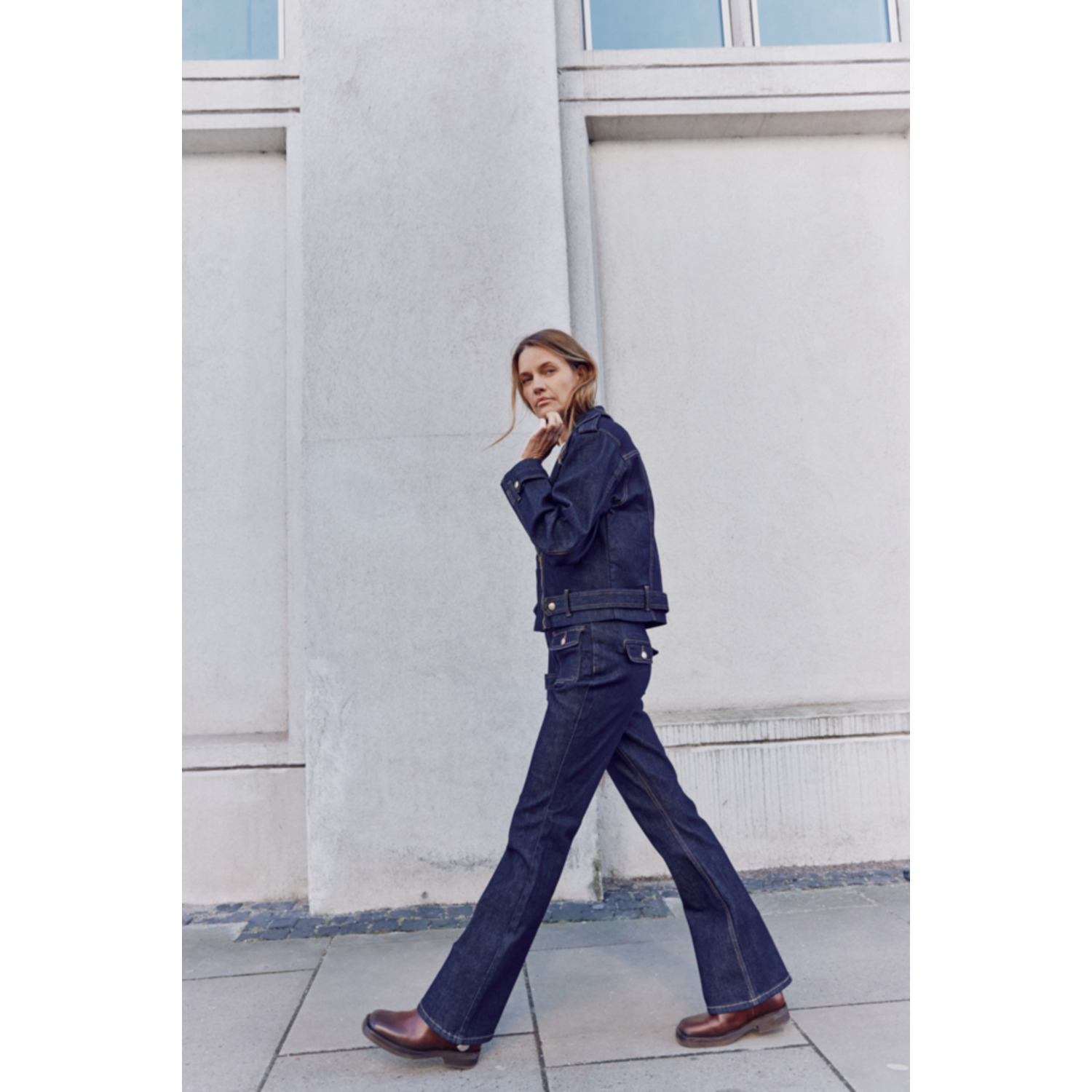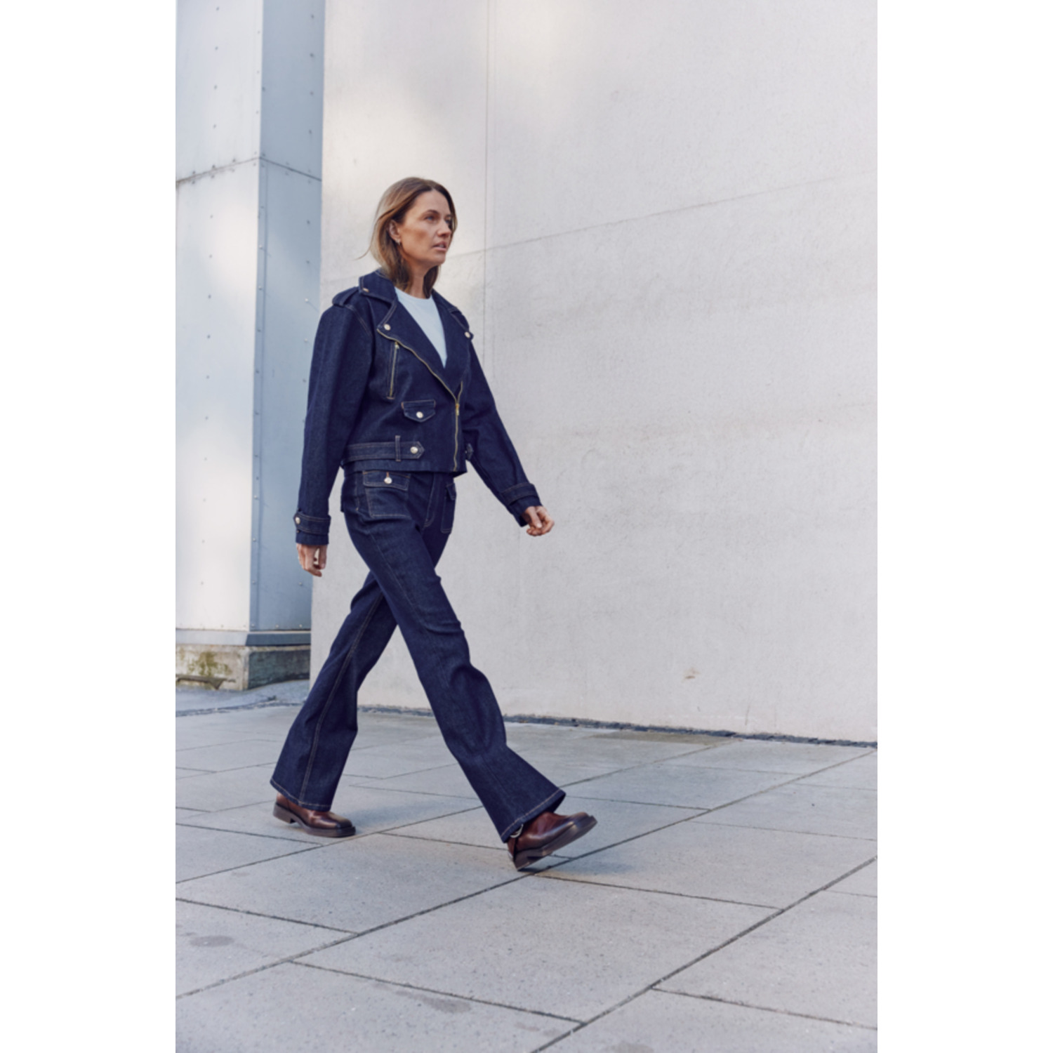 Omschrijving: Het Pulz PZChel Bikerjack in unwashed blue heeft een stoere uitstraling met een schuine rits en een riemdetail in de taille. De enkele klepzak aan de voorzijde geeft het jack een authentieke bikerlook. Perfect als set met de PZChel bootcut jeans of als statement over een basic outfit.