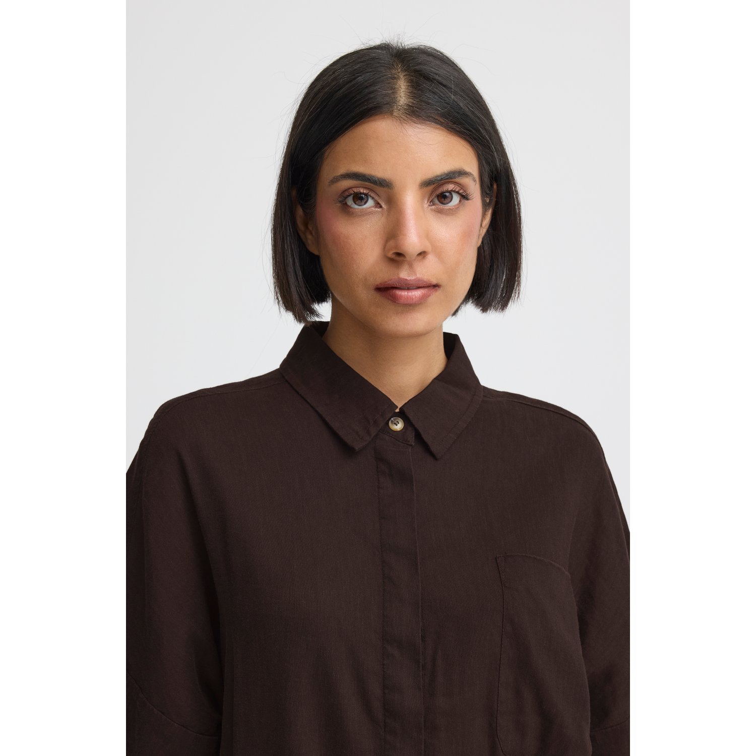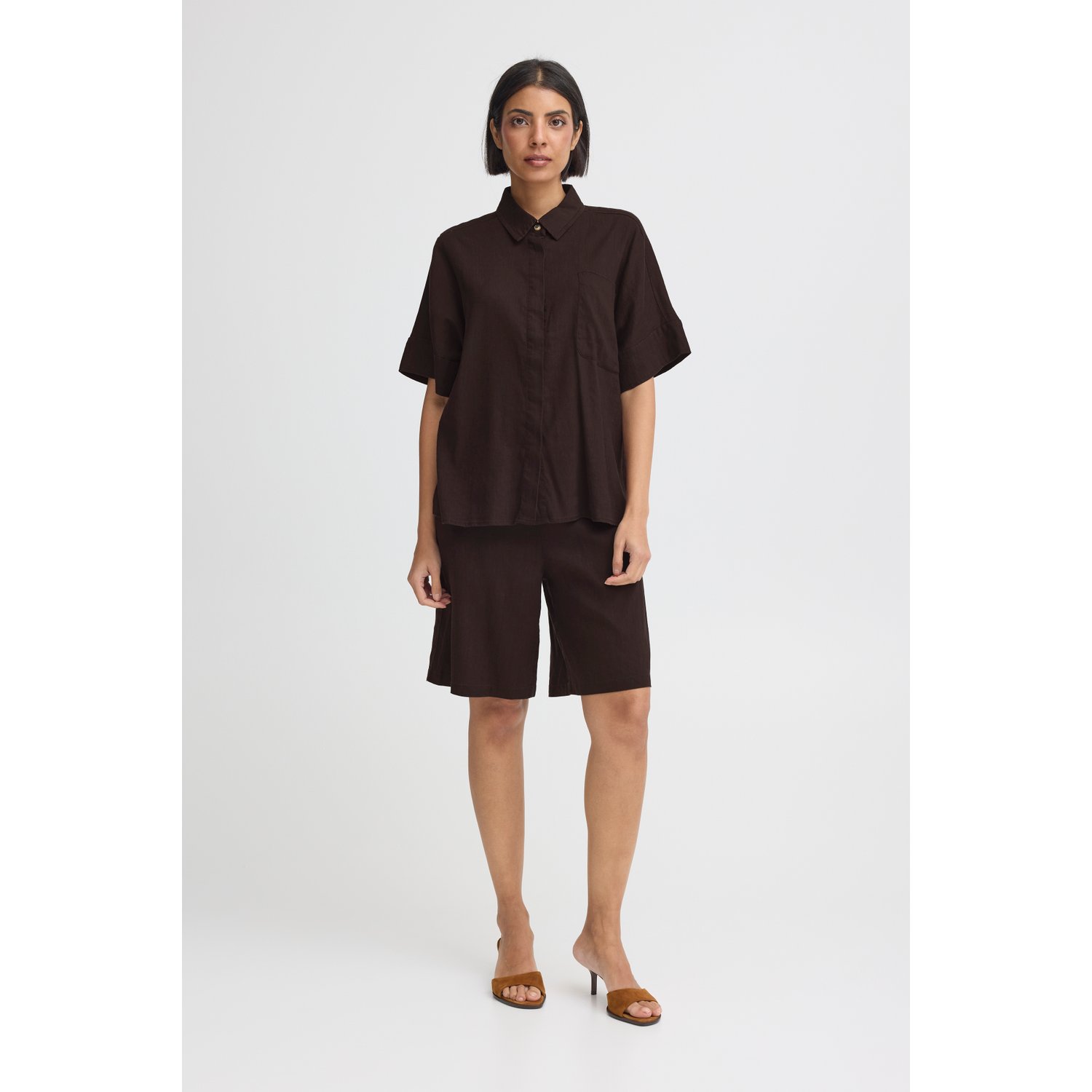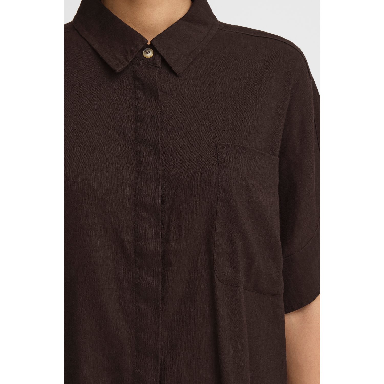Omschrijving: De PZLuca blouse van Pulz in chocoladebruin is de perfecte match met de bijpassende bermuda shorts. Gemaakt van een luchtige linnen viscose mix en uitgevoerd in een boxy fit voor een relaxte, moderne look. De blouse heeft korte mouwen en een kraag en is zowel open als dicht te dragen. Ideaal als co-ord set of los te stylen voor verschillende outfits.