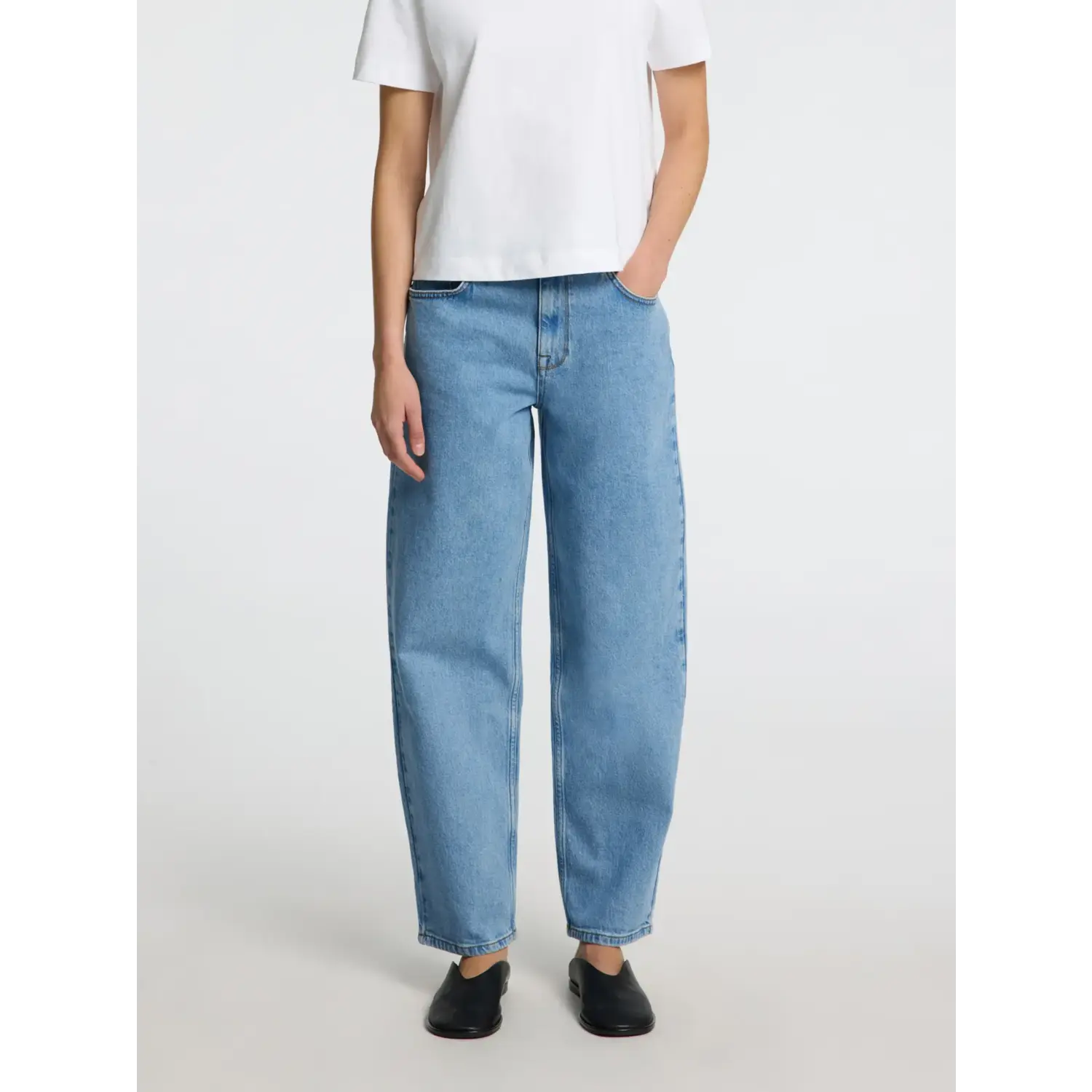 Materiaal: 99% Cotton - Organic, 1% Elastane Lengte: lange lengte Pasvorm: barrel fit Wasvoorschrift: 30°C fijnwas Bijzonderheden: helemaal de trend van 2025, de barrel jeans. Kleur fabrikant: light blue Sluiting: knoop rits Heuphoogte: mid waist Broekzakken: 5 pocket