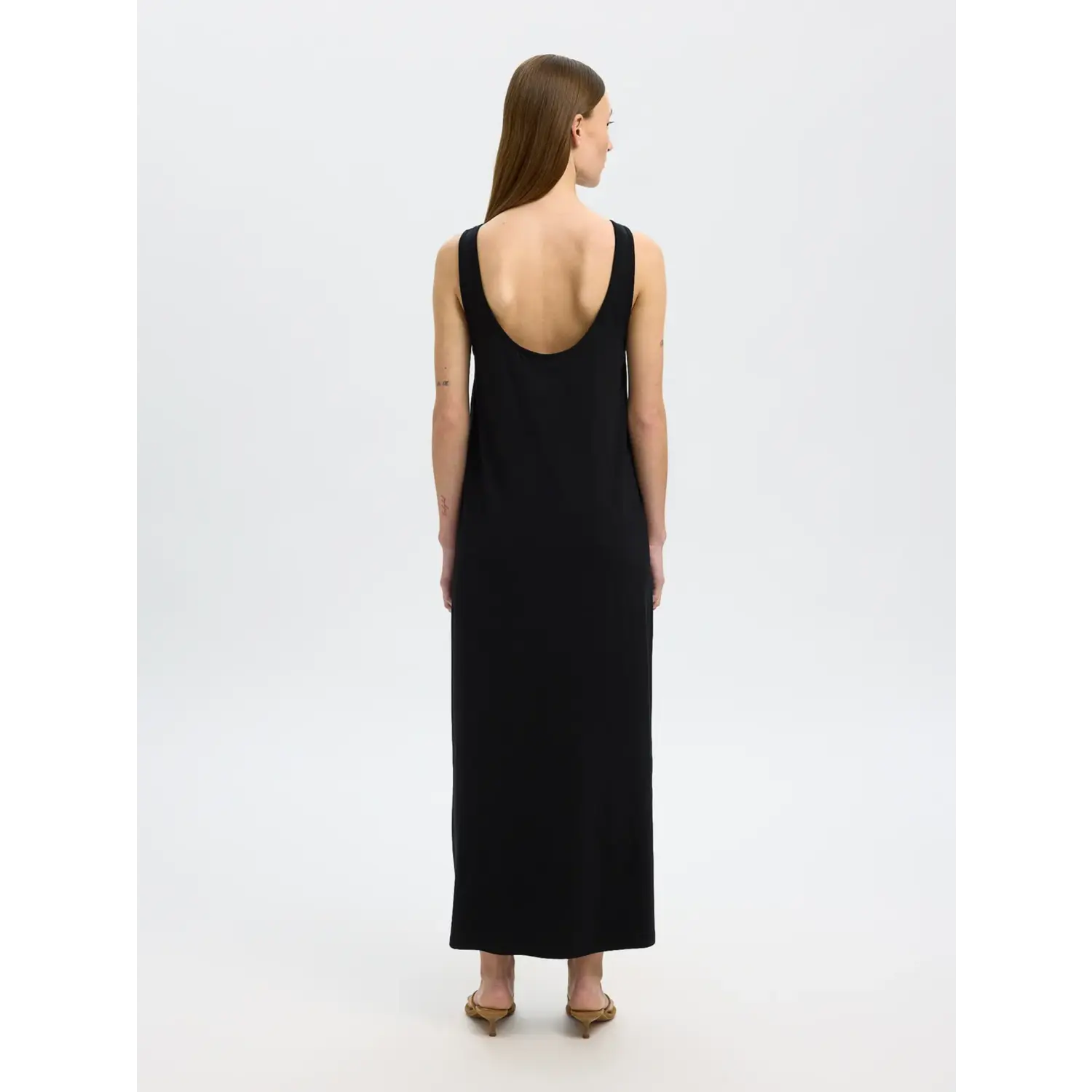 Bijzonderheden: soepele luchtige lange jurk van selected femme met een lage rug. Er zit een centuur bij om eventueel de taile te accentueren