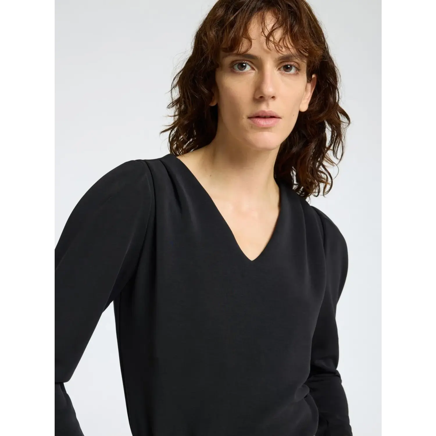 Materiaal: 51% TENCEL™ Modal, 45% Polyester, 4% Elastaan Lengte: normale lengte Pasvorm: regular fit Wasvoorschrift: 30°C fijnwas Bijzonderheden: Deze top met lange mouwen is simpel maar elegant en is ideaal voor een date of een avondje uit. Hij heeft prachtige drapering bij de schouders. Je kunt hem met van alles stylen, van een minirok tot een pantalon. Kleur fabrikant: Black Halslijn: v hals Mouwlengte: lange mouwen