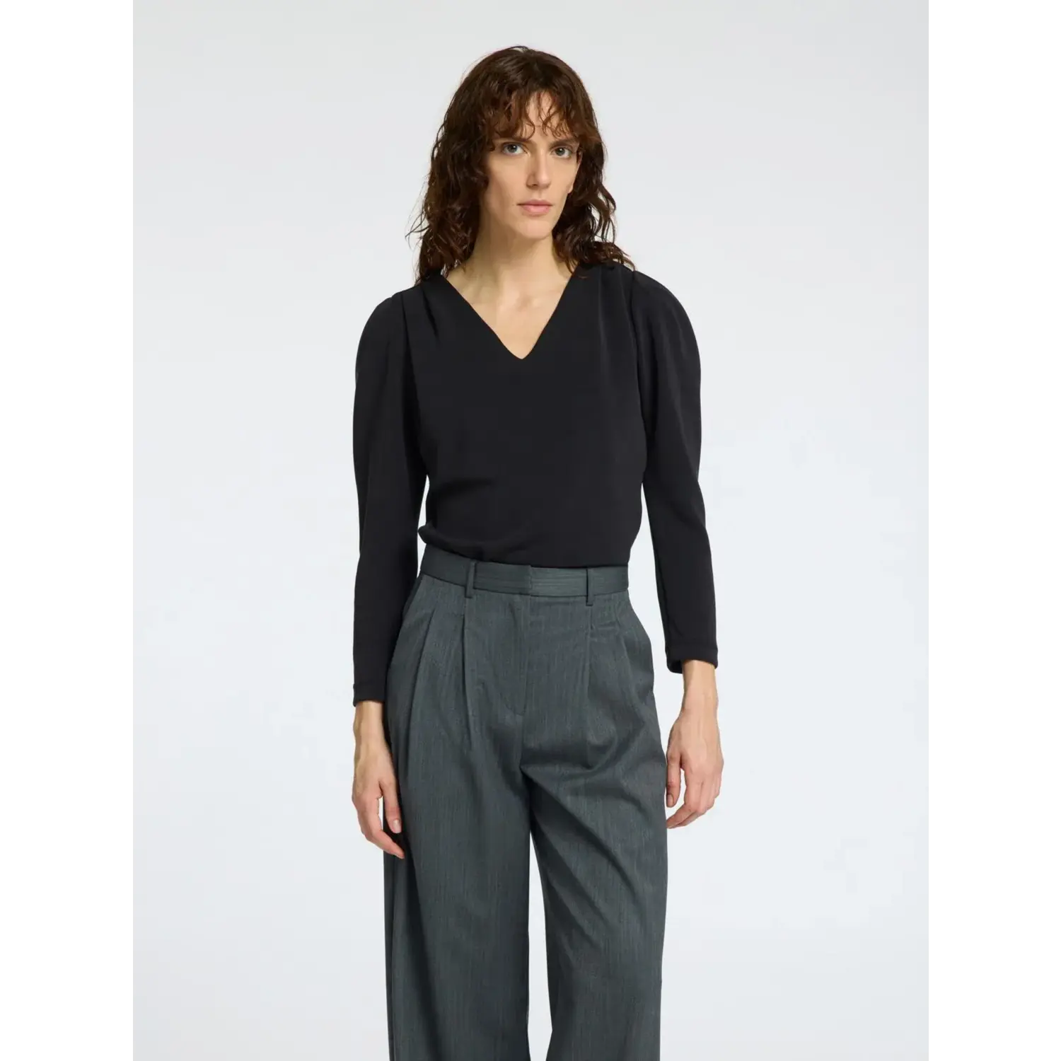 Bijzonderheden: Deze top met lange mouwen is simpel maar elegant en is ideaal voor een date of een avondje uit. Hij heeft prachtige drapering bij de schouders. Je kunt hem met van alles stylen, van een minirok tot een pantalon.