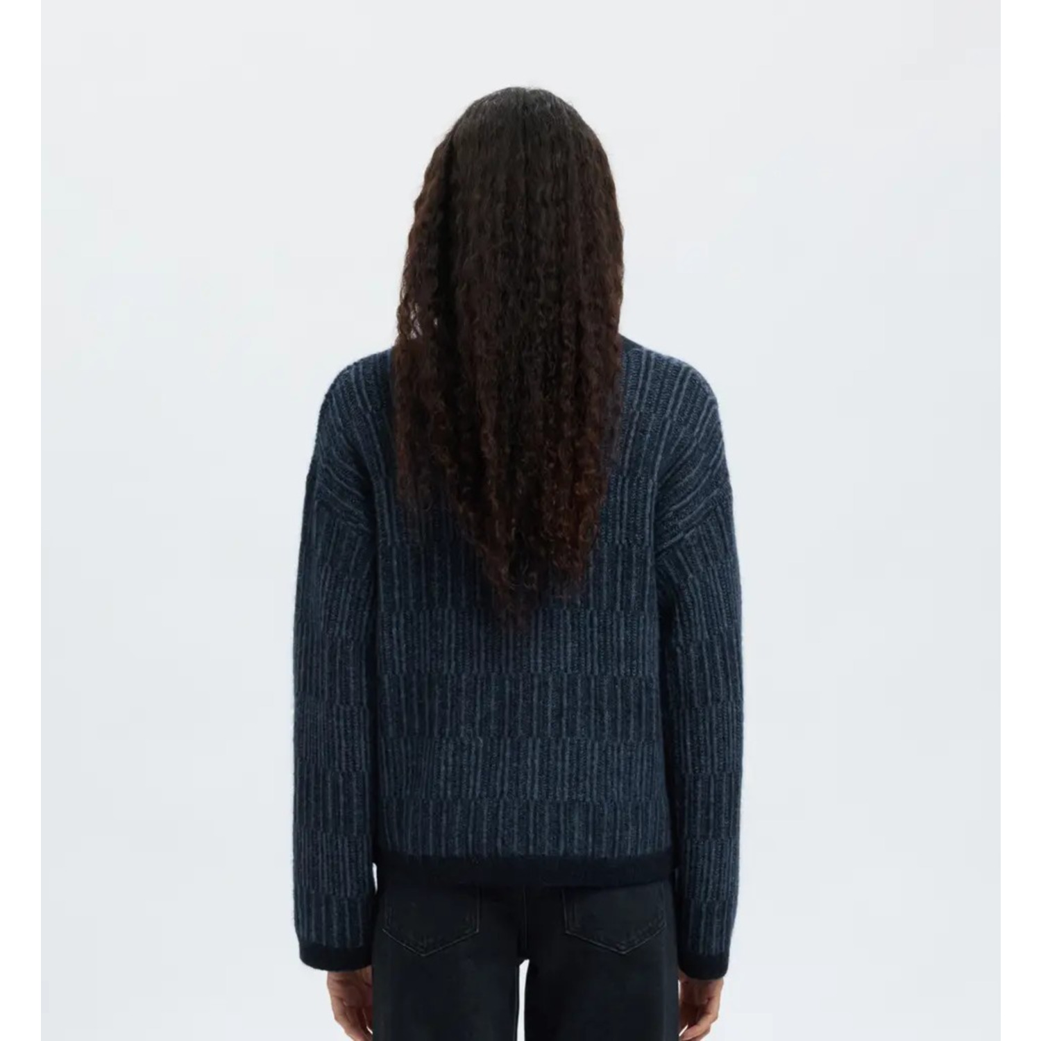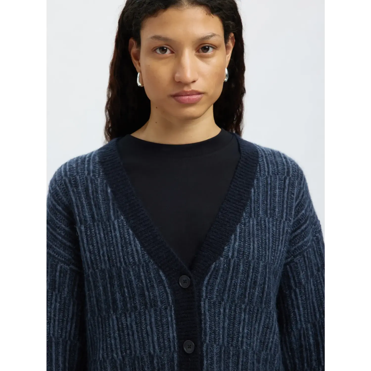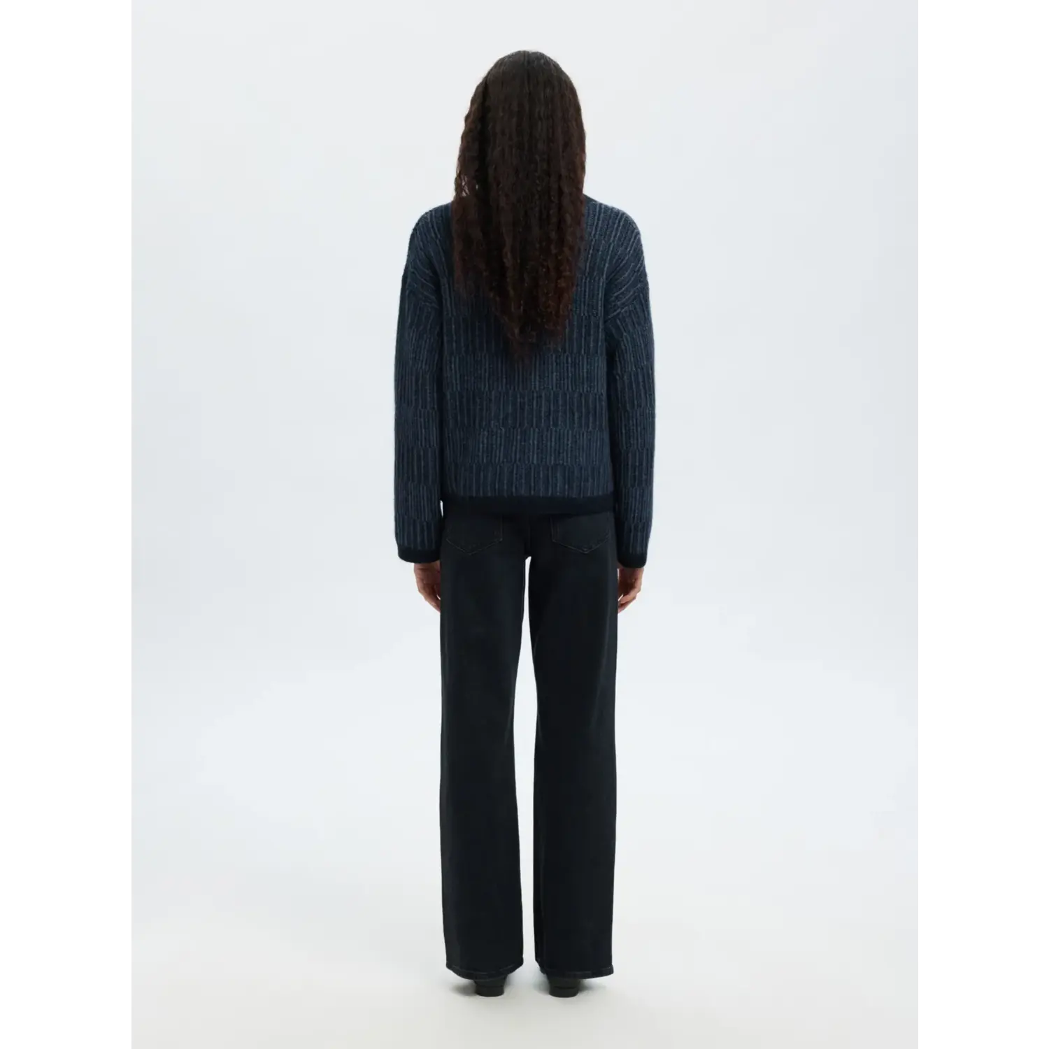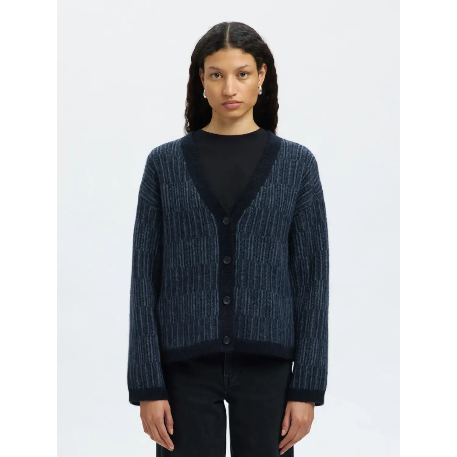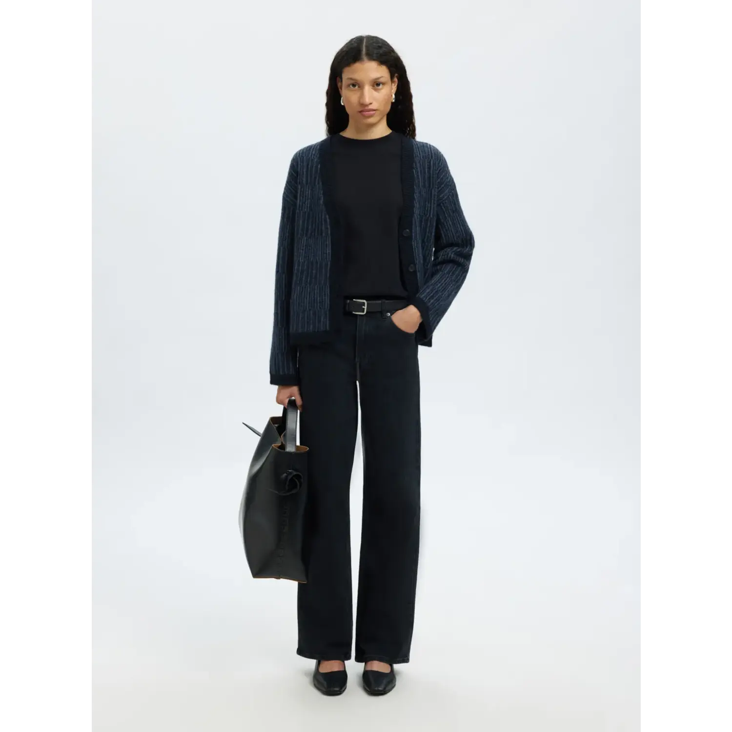 Selected SLFAlva LS Knit Stripe V-Cardigan Blauw