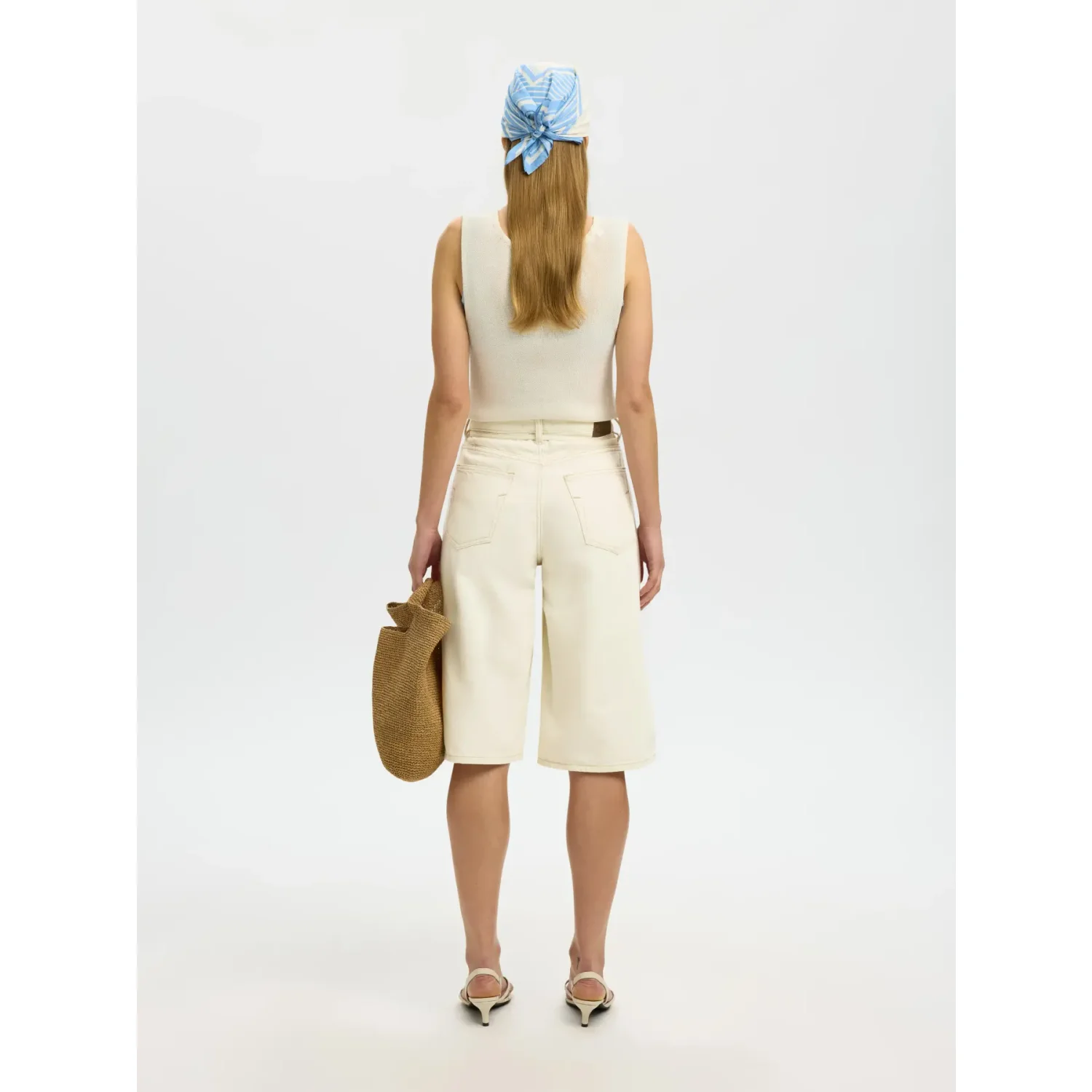 Selected SLFTenna MW Bermuda Denim Shorts Creme