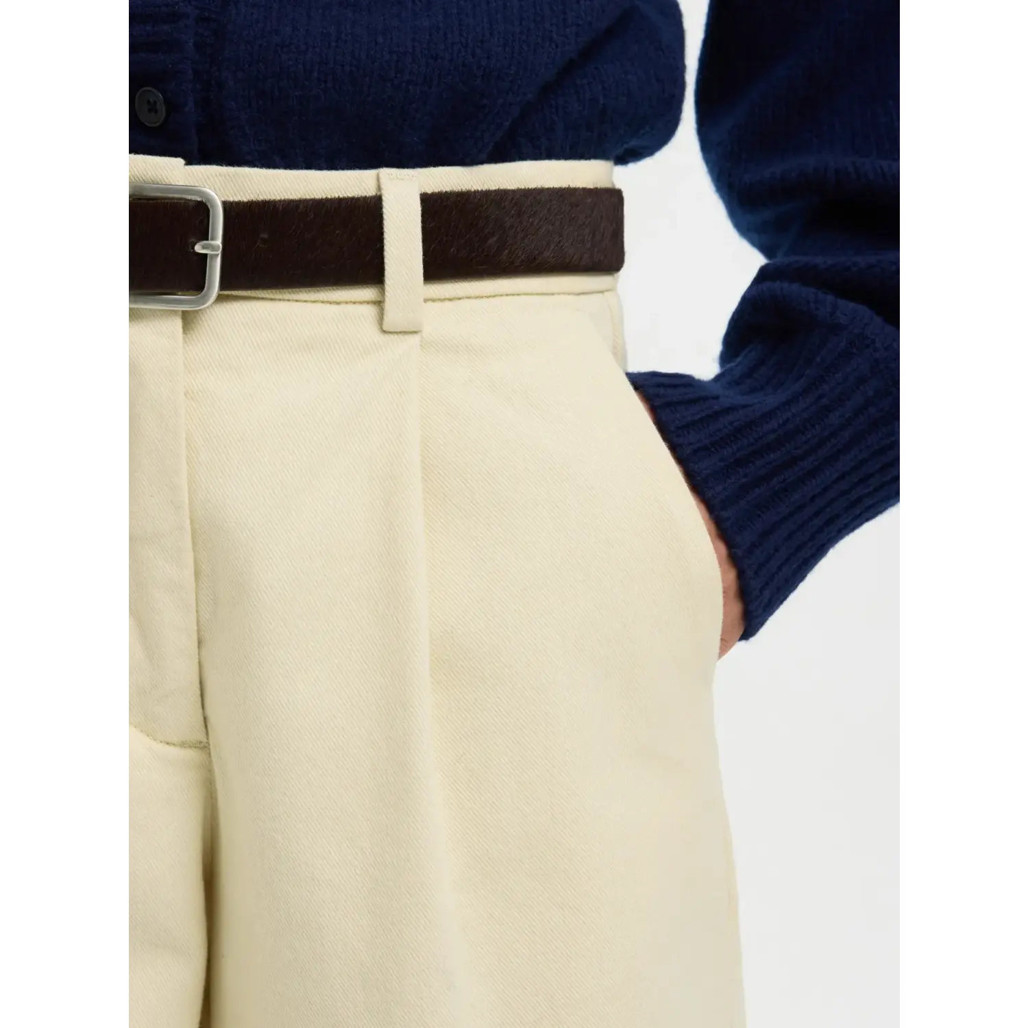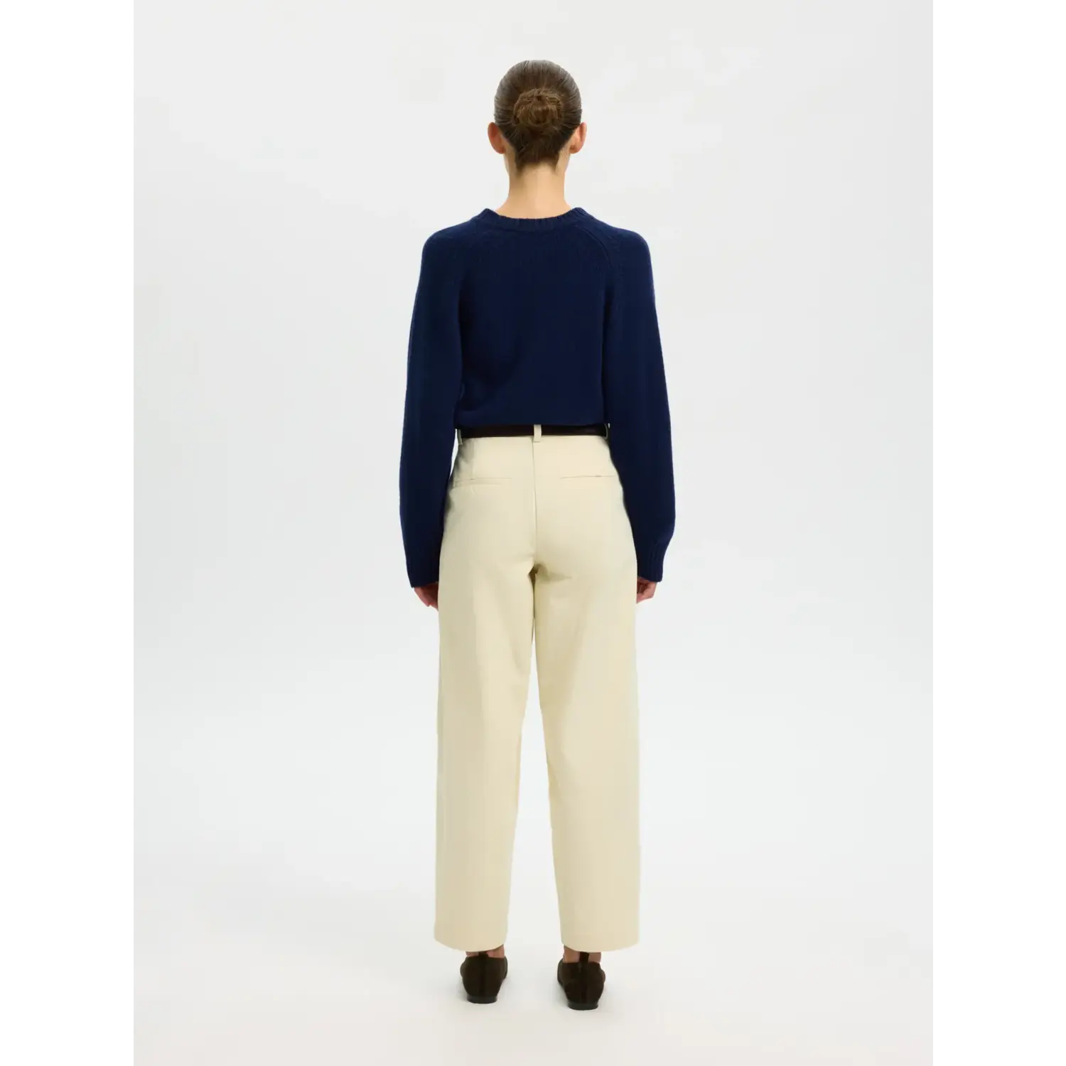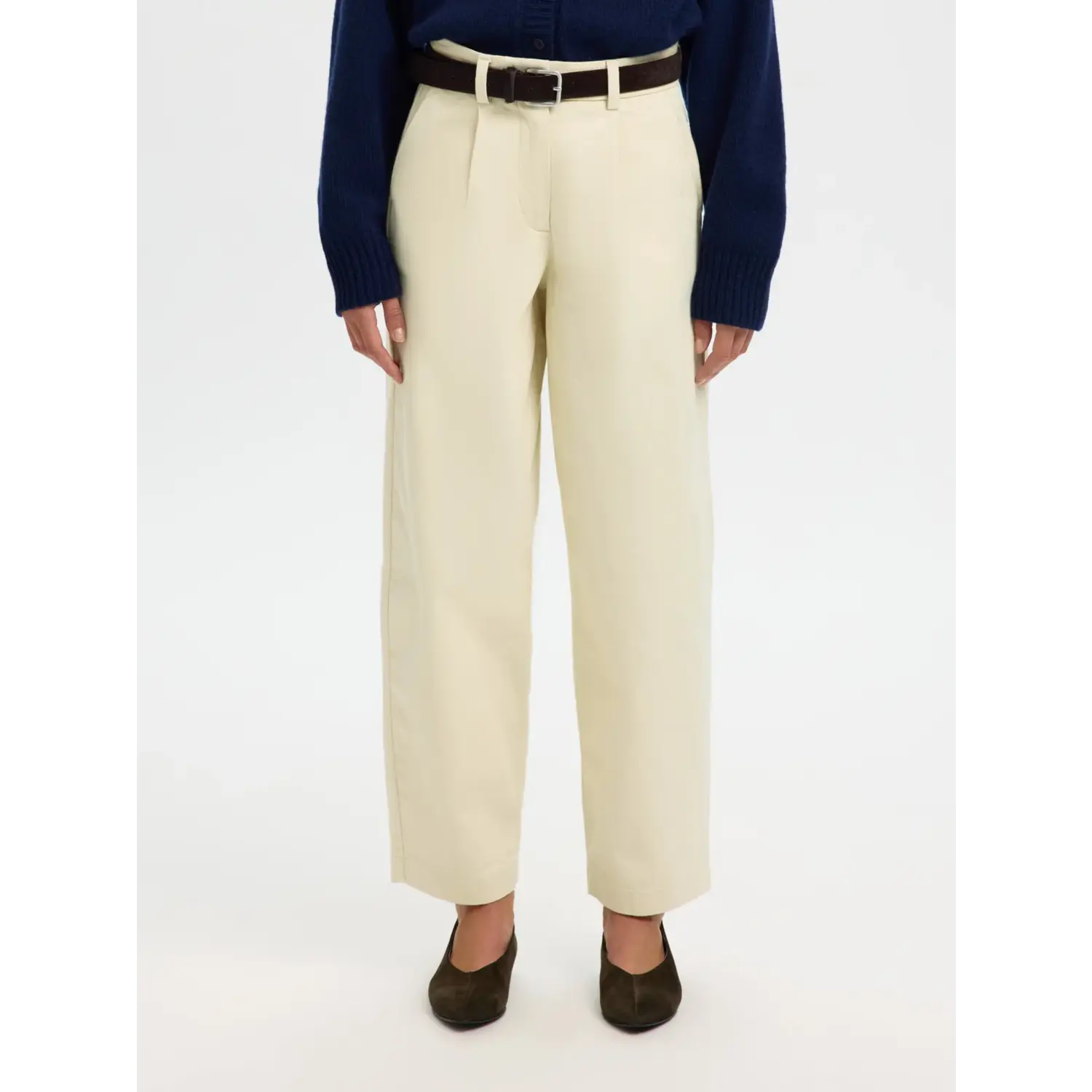 Materiaal: 60% Cotton - Organic, 38% Cotton, 2% Elastane Lengte: lange lengte Pasvorm: barrel Wasvoorschrift: 30°C fijnwas Omschrijving: De SLFBarrel Alma-Hadi MW Pant van Selected Femme is een stijlvolle roomwitte broek met een eigentijdse barrel fit. De zachte stofmix met biologisch katoen draagt comfortabel, terwijl de plooien en lengte zorgen voor een moderne, verfijnde look. Perfect te combineren met blouses, truien of een blazer voor een frisse, tijdloze outfit. Kleur fabrikant: birch Sluiting: knoop rits Heuphoogte: mid waist Broekzakken: steekzakken en paspelzakken