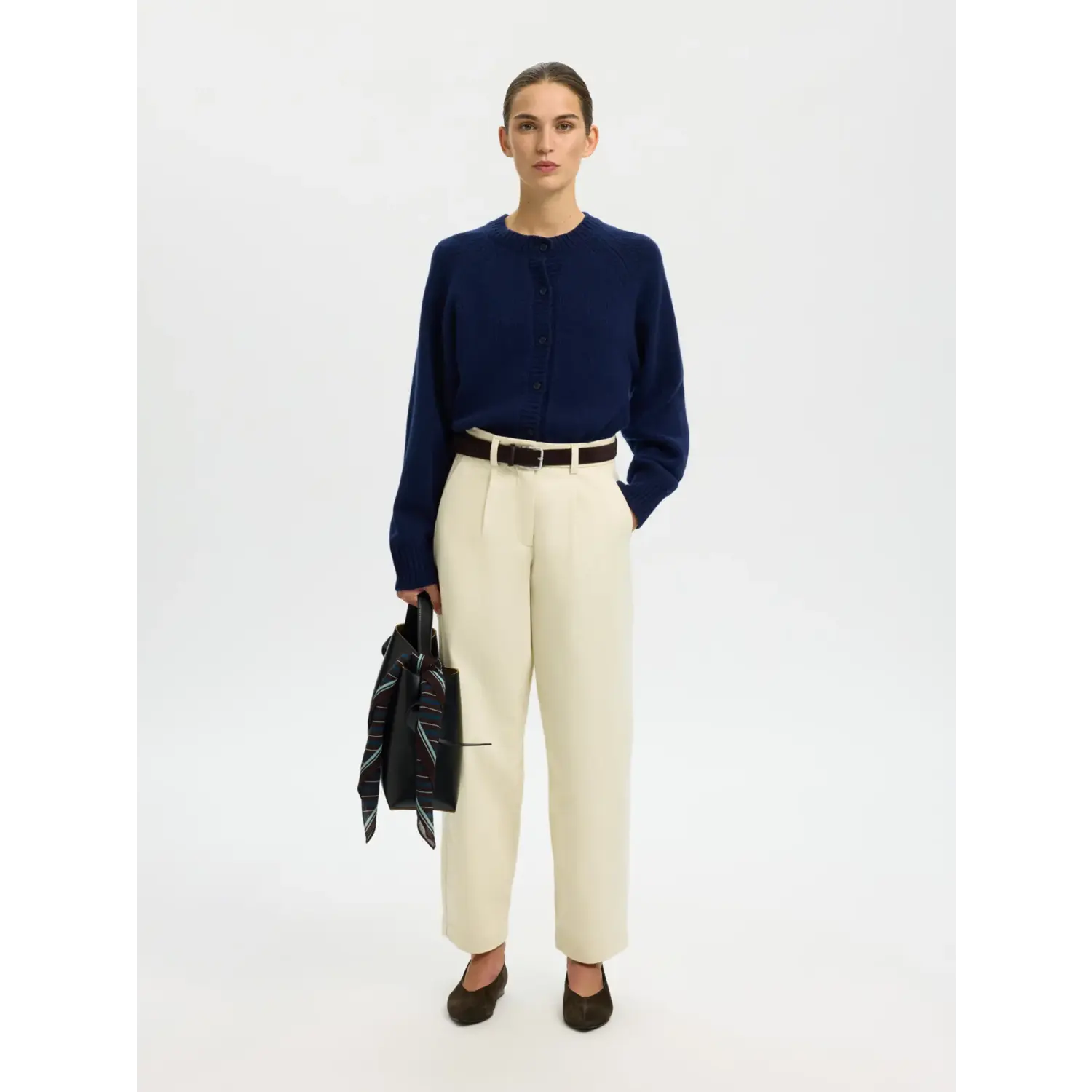 Omschrijving: De SLFBarrel Alma-Hadi MW Pant van Selected Femme is een stijlvolle roomwitte broek met een eigentijdse barrel fit. De zachte stofmix met biologisch katoen draagt comfortabel, terwijl de plooien en lengte zorgen voor een moderne, verfijnde look. Perfect te combineren met blouses, truien of een blazer voor een frisse, tijdloze outfit.
