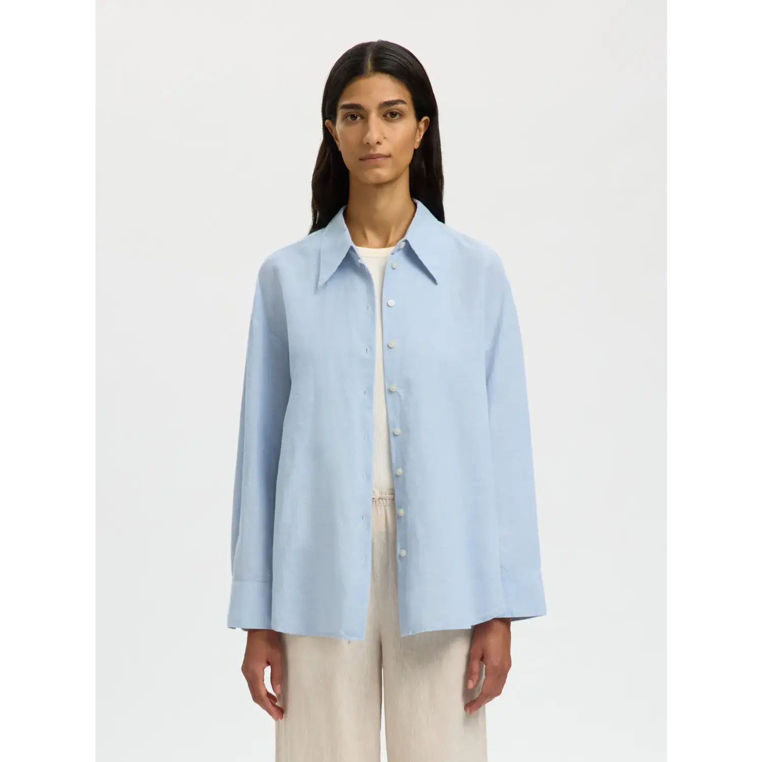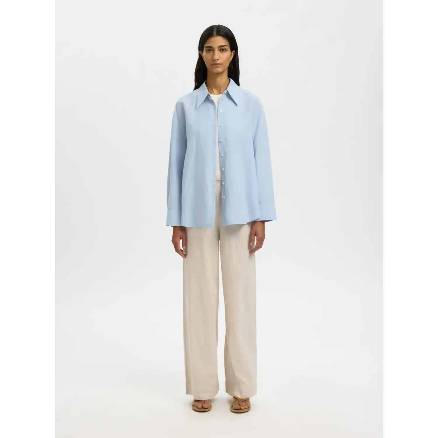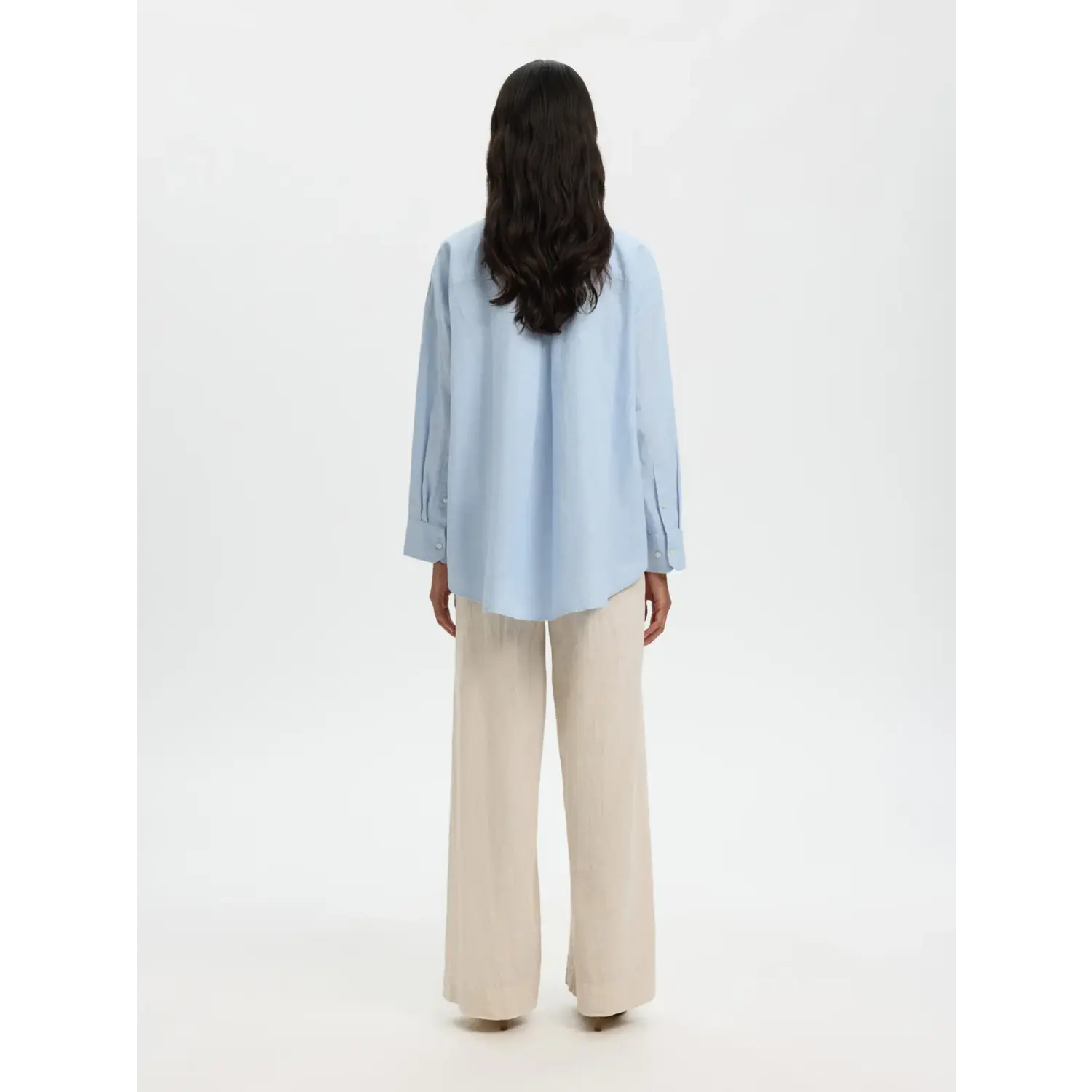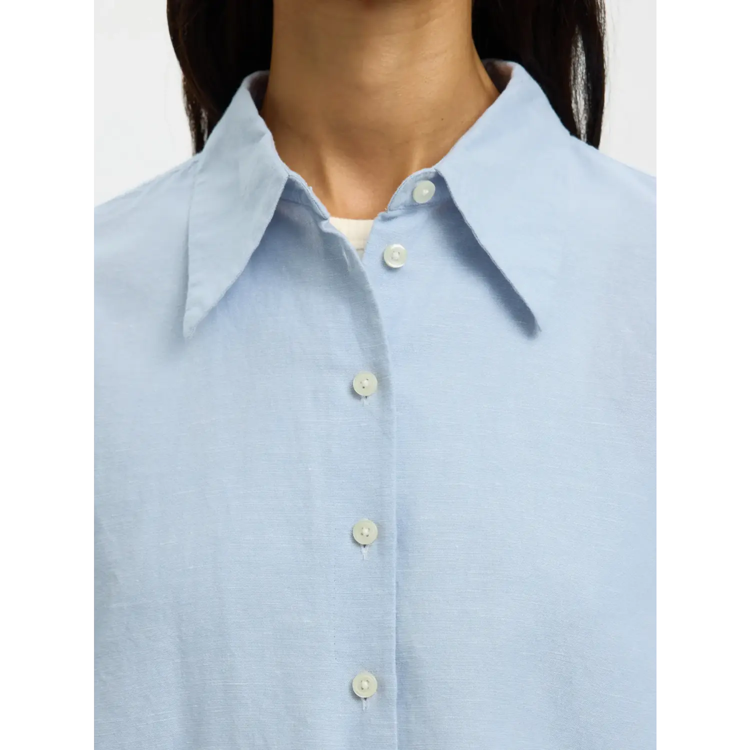 Selected Women SLWCleo Linnen Blouse Licht Blauw